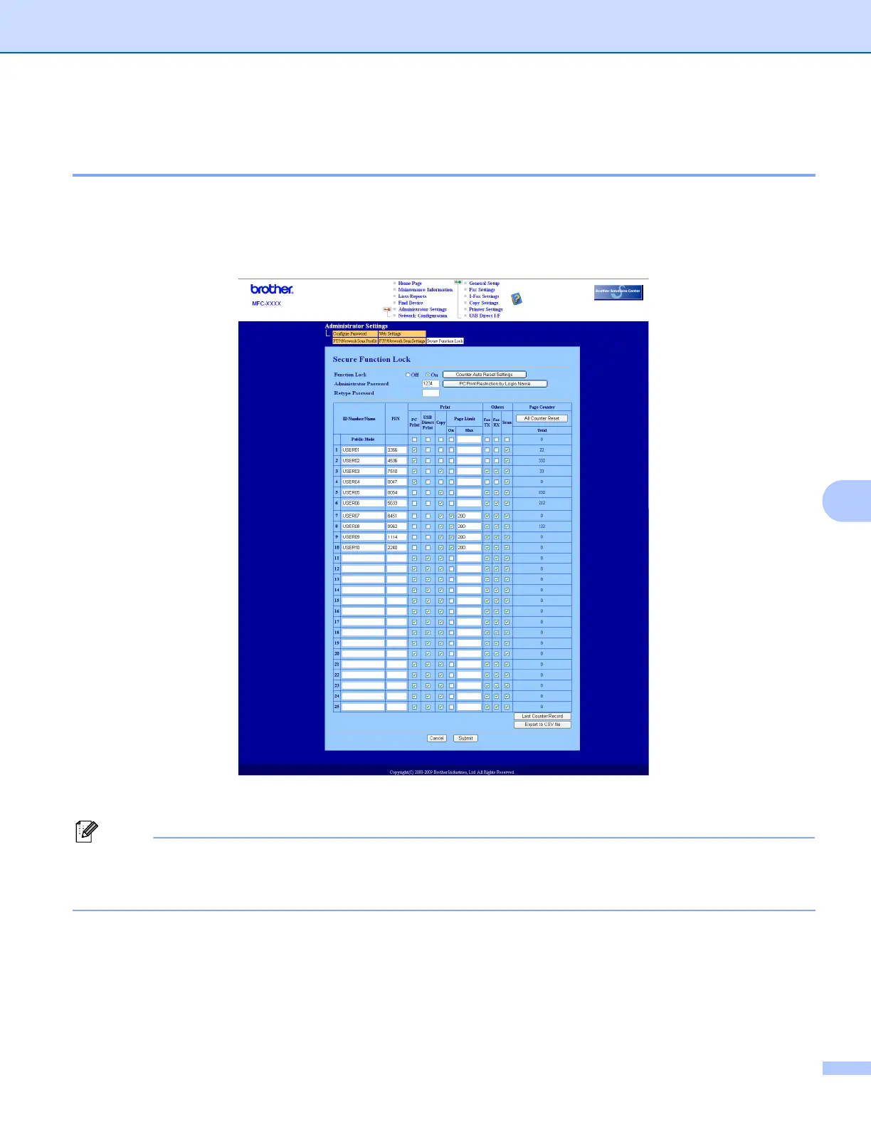 a Click Administrator Settings on the MFC-XXXX (or DCP-XXXX) web page, and then click