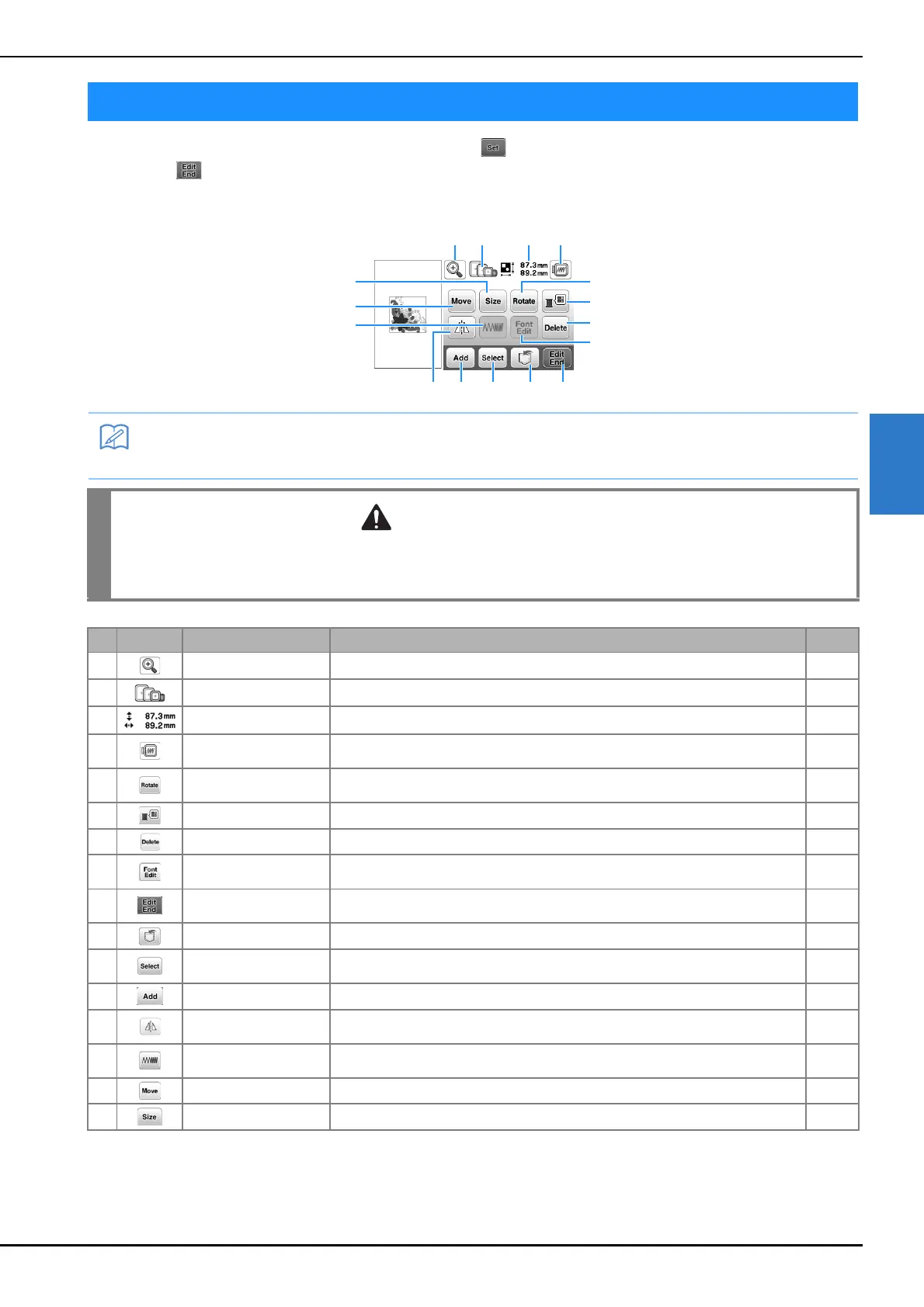 4 Preview key Press this key to show sewn image. For details, refer to “Previewing the selected