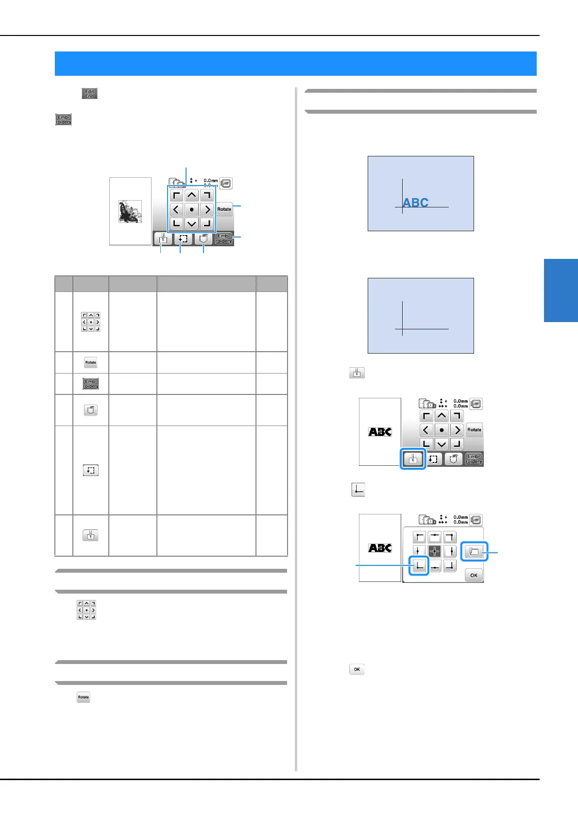 When is pressed in the editing screen, the embroidery
