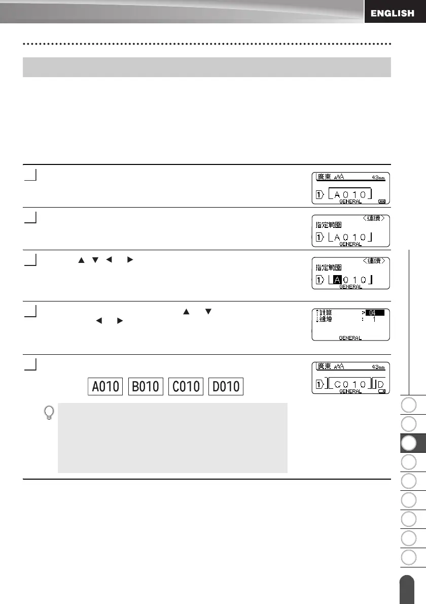 mode creates a series of labels by incrementing two different numbers at the same time. 進