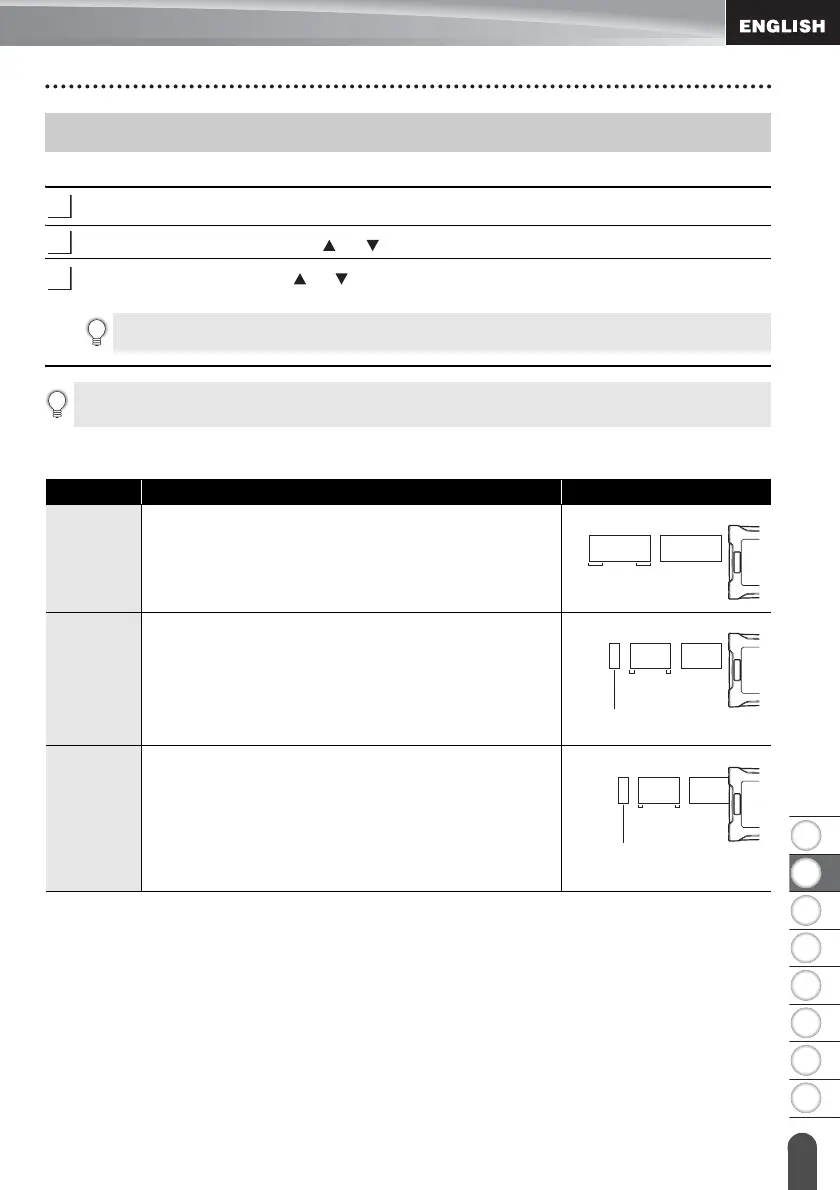 • Refer to the Tape Cutting Options table for a list of all available settings.