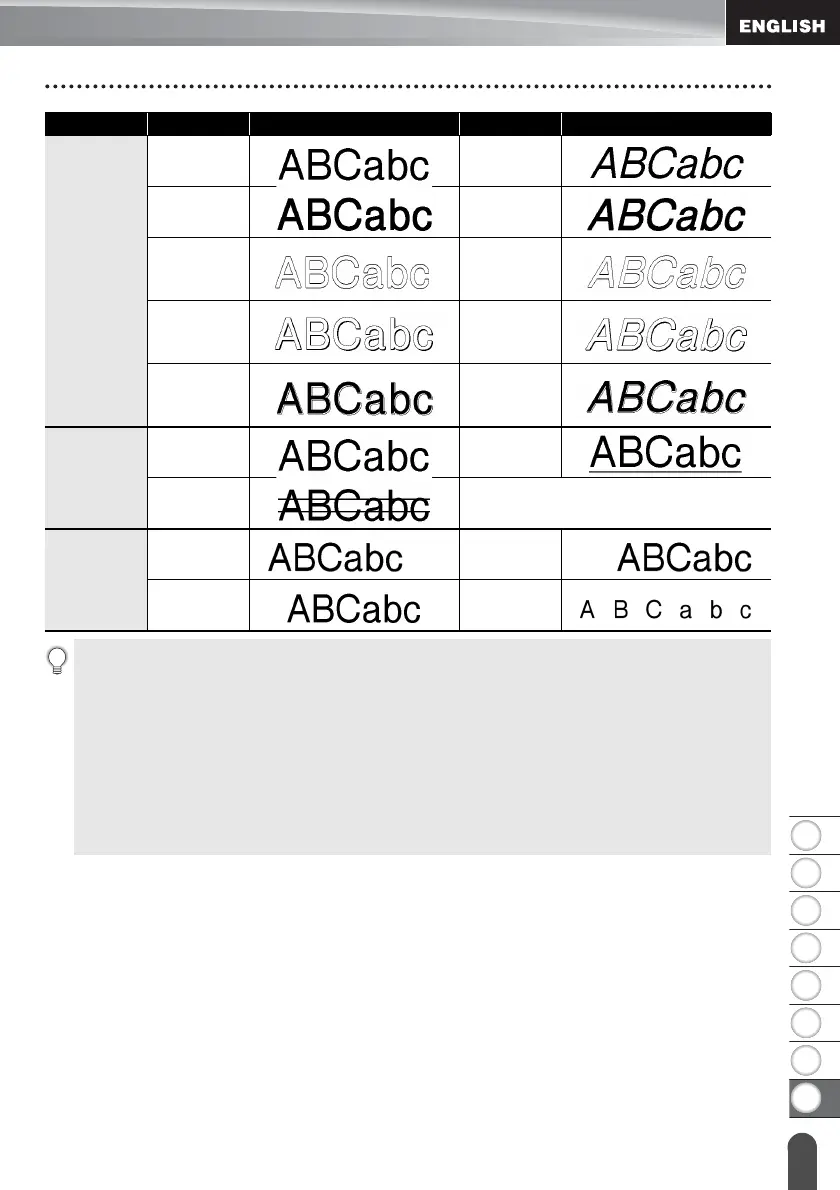 labels, the height of the alphabet characters (capital letters) will automatically be short