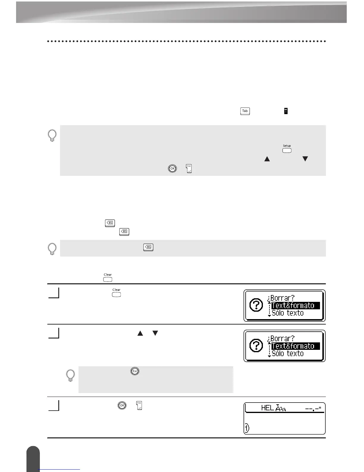 • Utilice la tecla para borrar todo el texto de una sola vez.