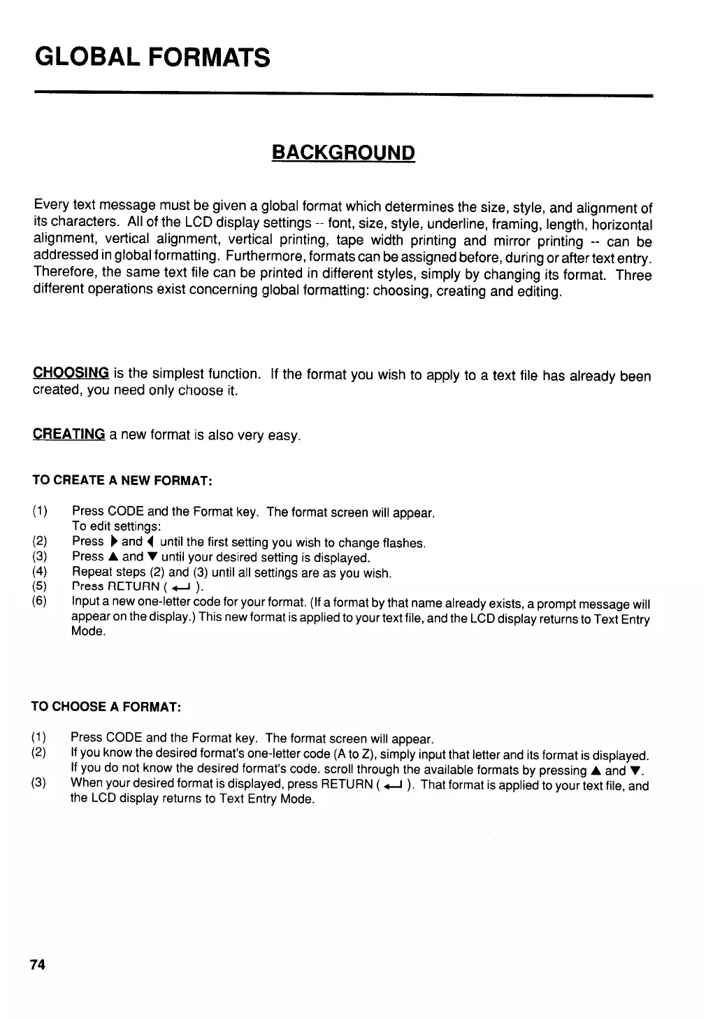 Brother P-Touch PT-8000 - To Create a New Format; To Choose a Format