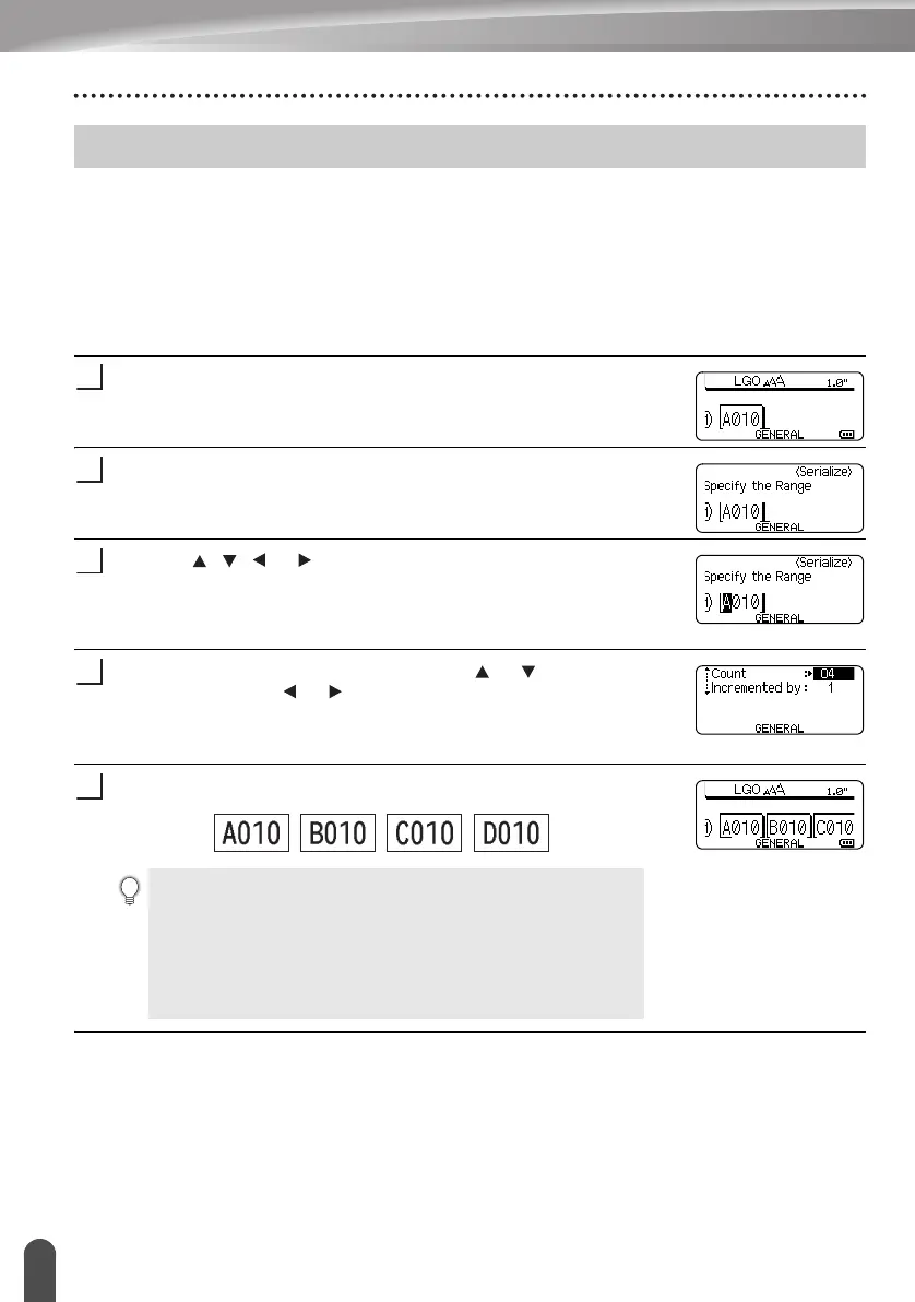 Numerically serialized labels can be printed. You can set the increment and count for the