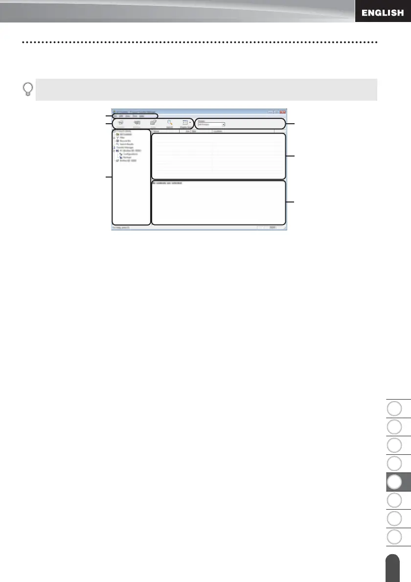 Displays a list of folders and P-touch labeling system. When you select a folder, the