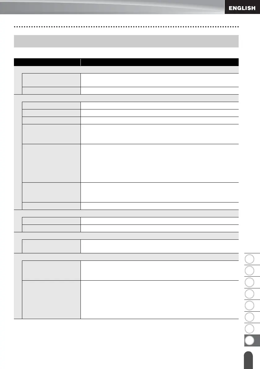No. of lines 0.94" (24 mm) tape : 1 - 7 lines; 0.70" (18 mm) tape : 1 - 5 lines;