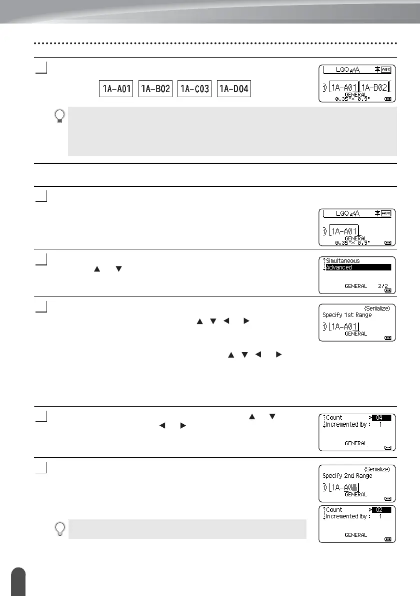 • To specify a range of characters, use the , , or key to