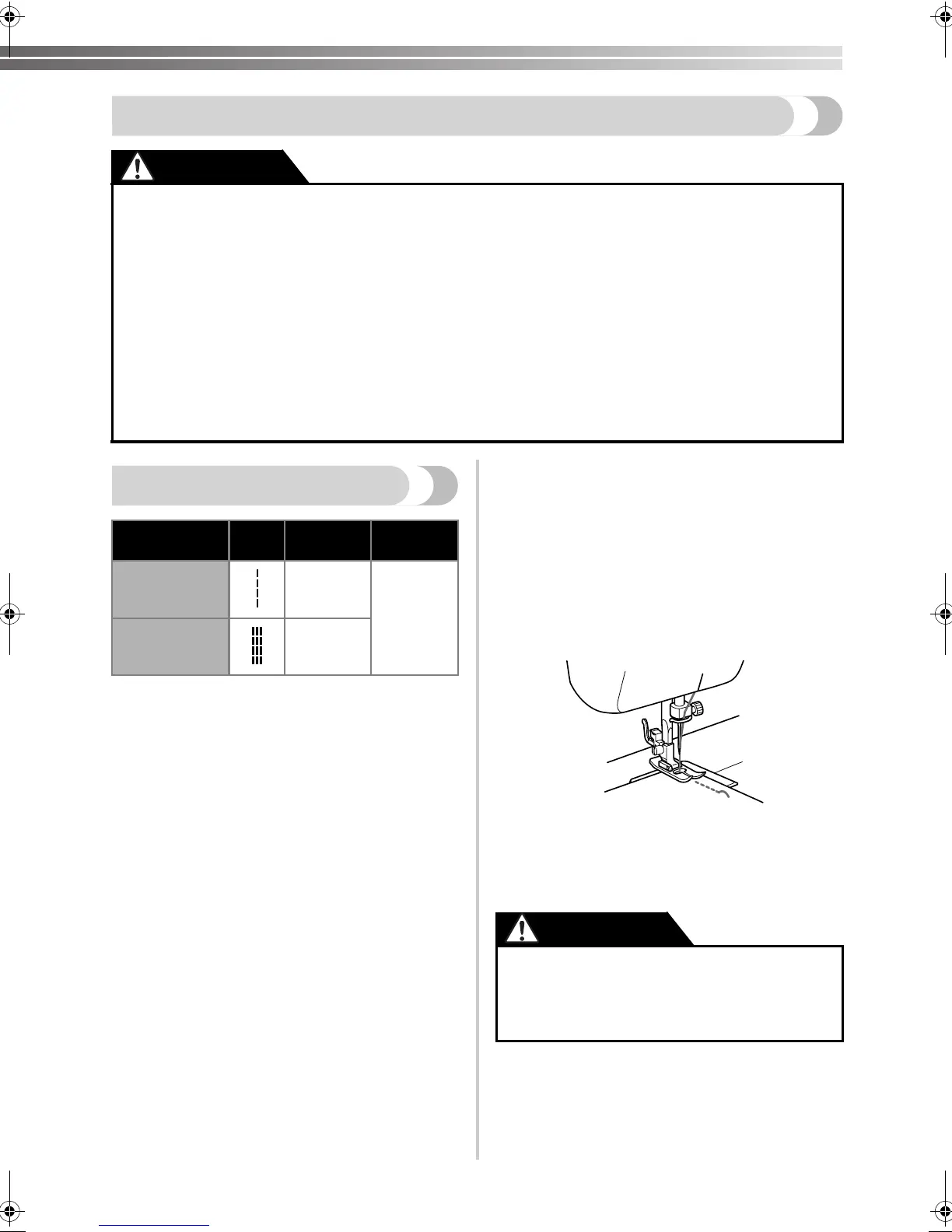 ● Take care that the needle does not hit basting pins or other objects during sewing, otherwise