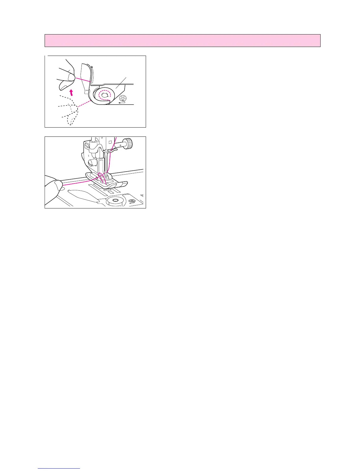 2. While holding the upper thread, press the “NEEDLE POSI-