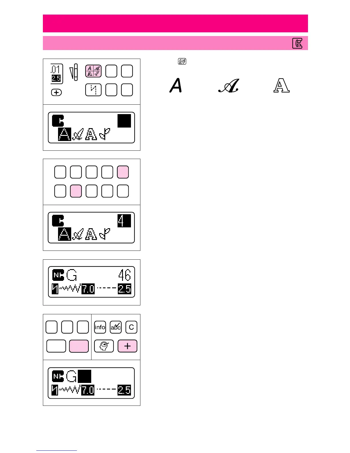the stitch selection keys to enter the number of the next char-