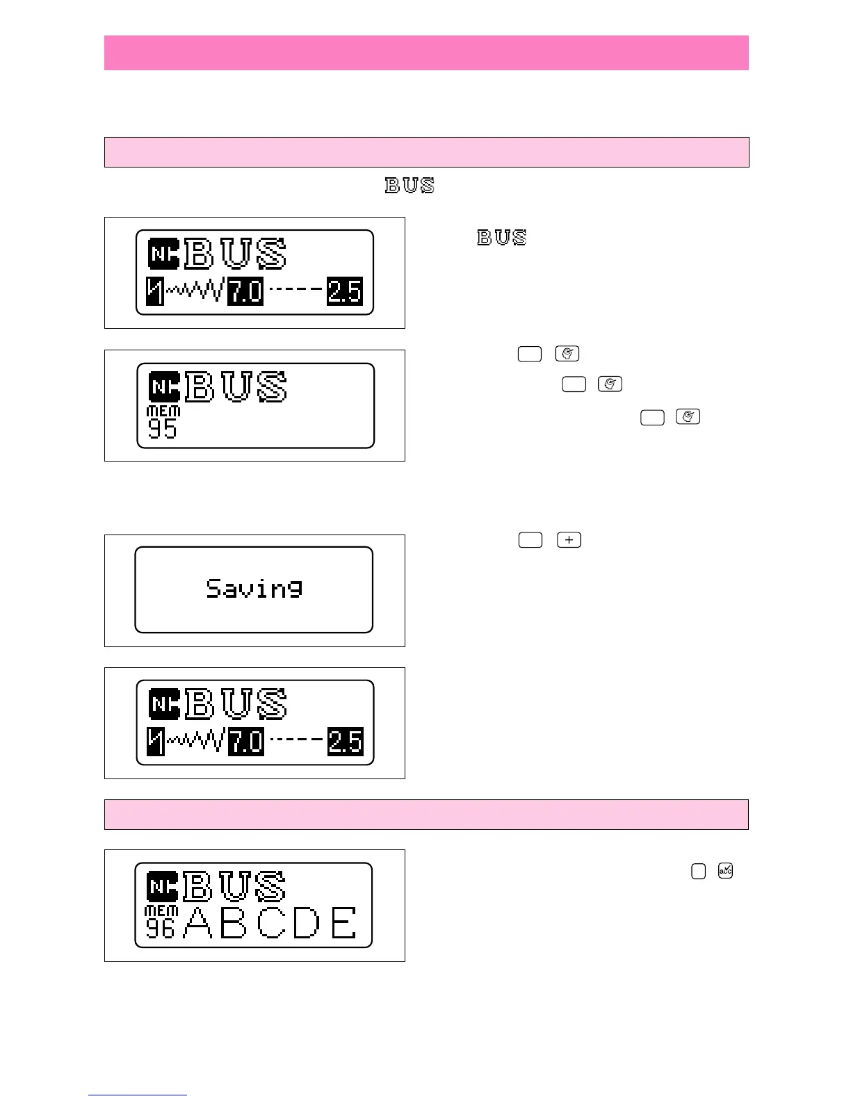 Up to 70 pattern combinations can be stored in the memory under the five stitch numbers 95, 96, 97, 98 and