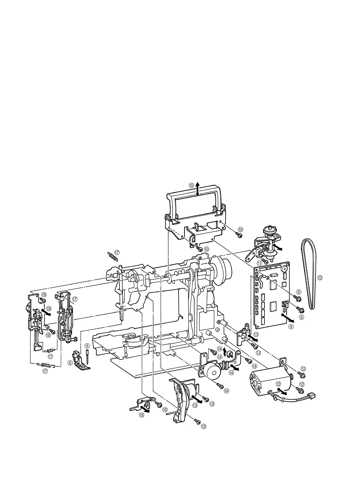 12. Remove the motor belt and pull out the motor connector. Remove the two screws and the main motor.