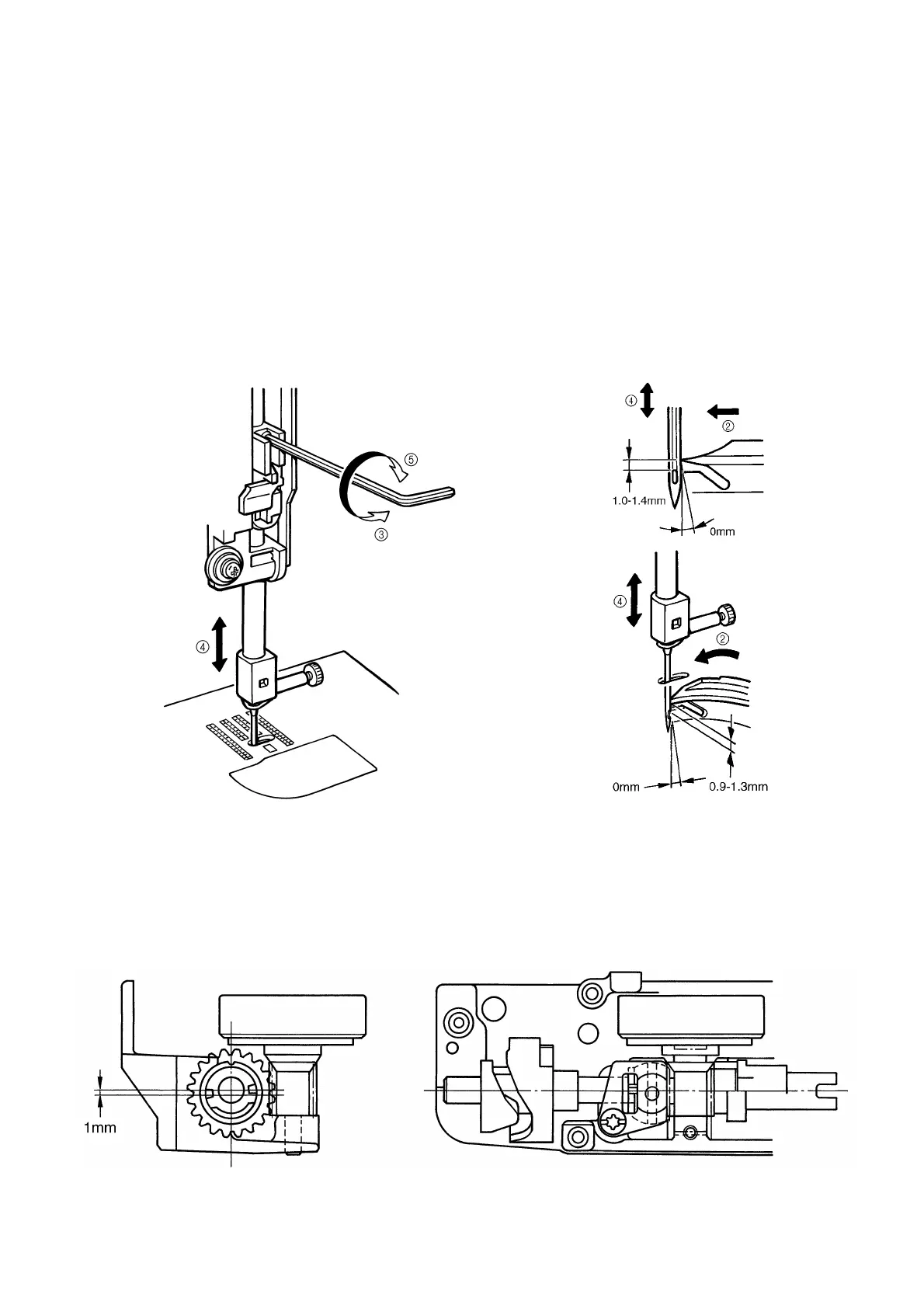 the clearance between the upper end of the needle eye and the bottom of the rotary hook point should be 1.0-1.4