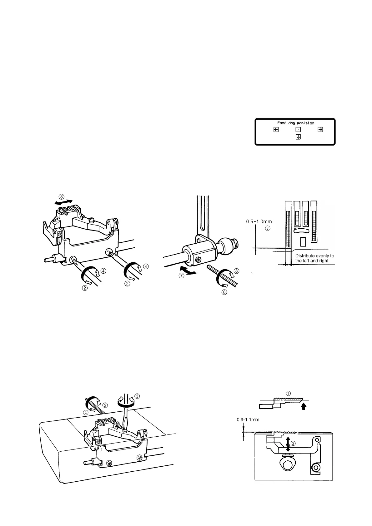 the feed start position (when feed dog is at very front) should be 0.5 to 1.0. (Refer to illustration)