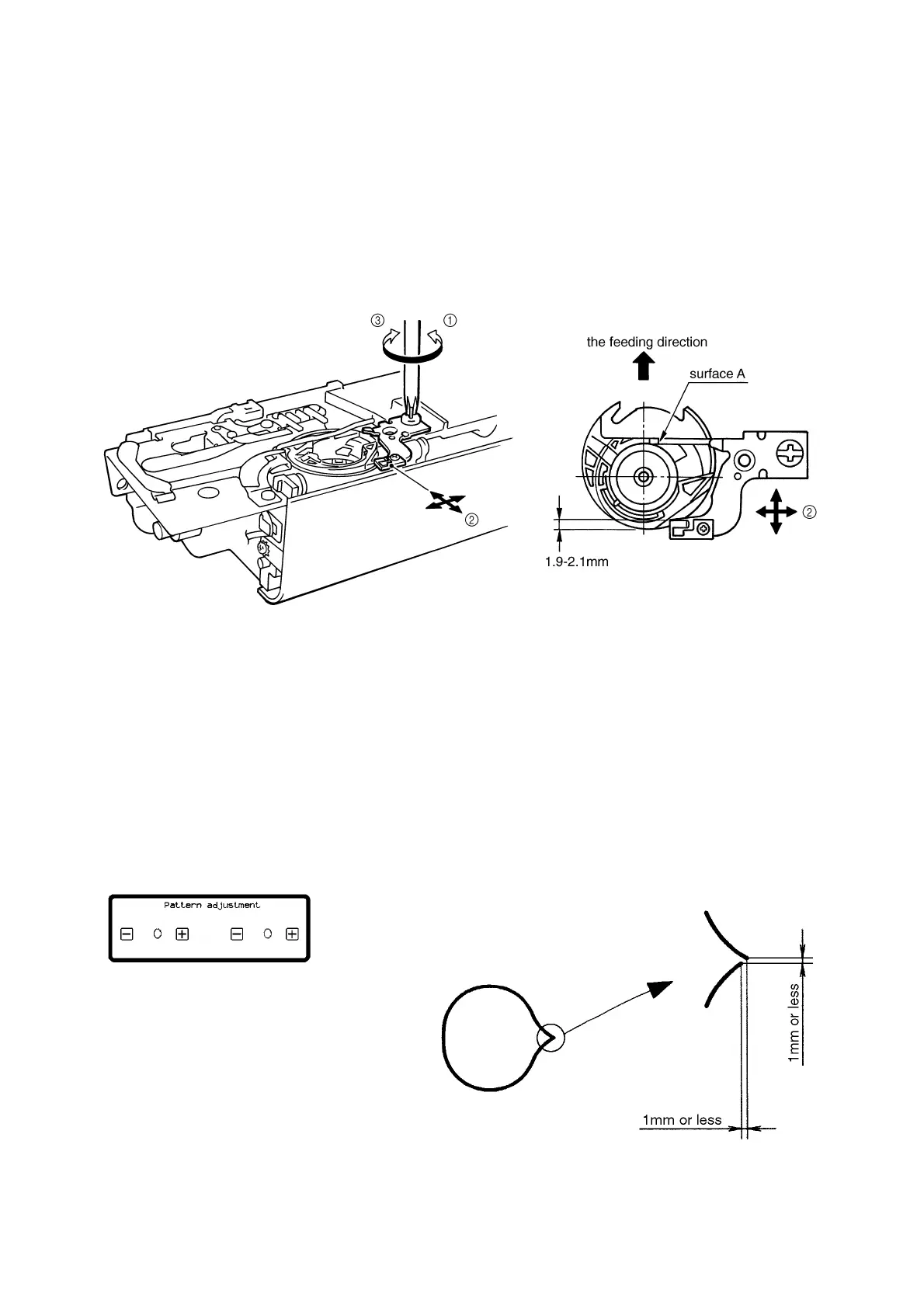 NOTE: Surface A of the inner rotary hook bracket should be perpendicular to the feeding direction.