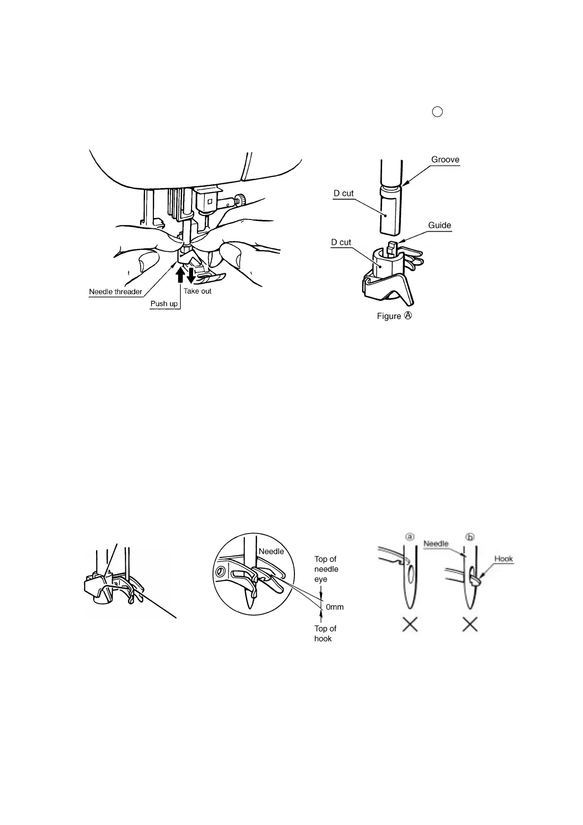 1. The clearance between the top of hook and the top of needle eye is 0 mm.