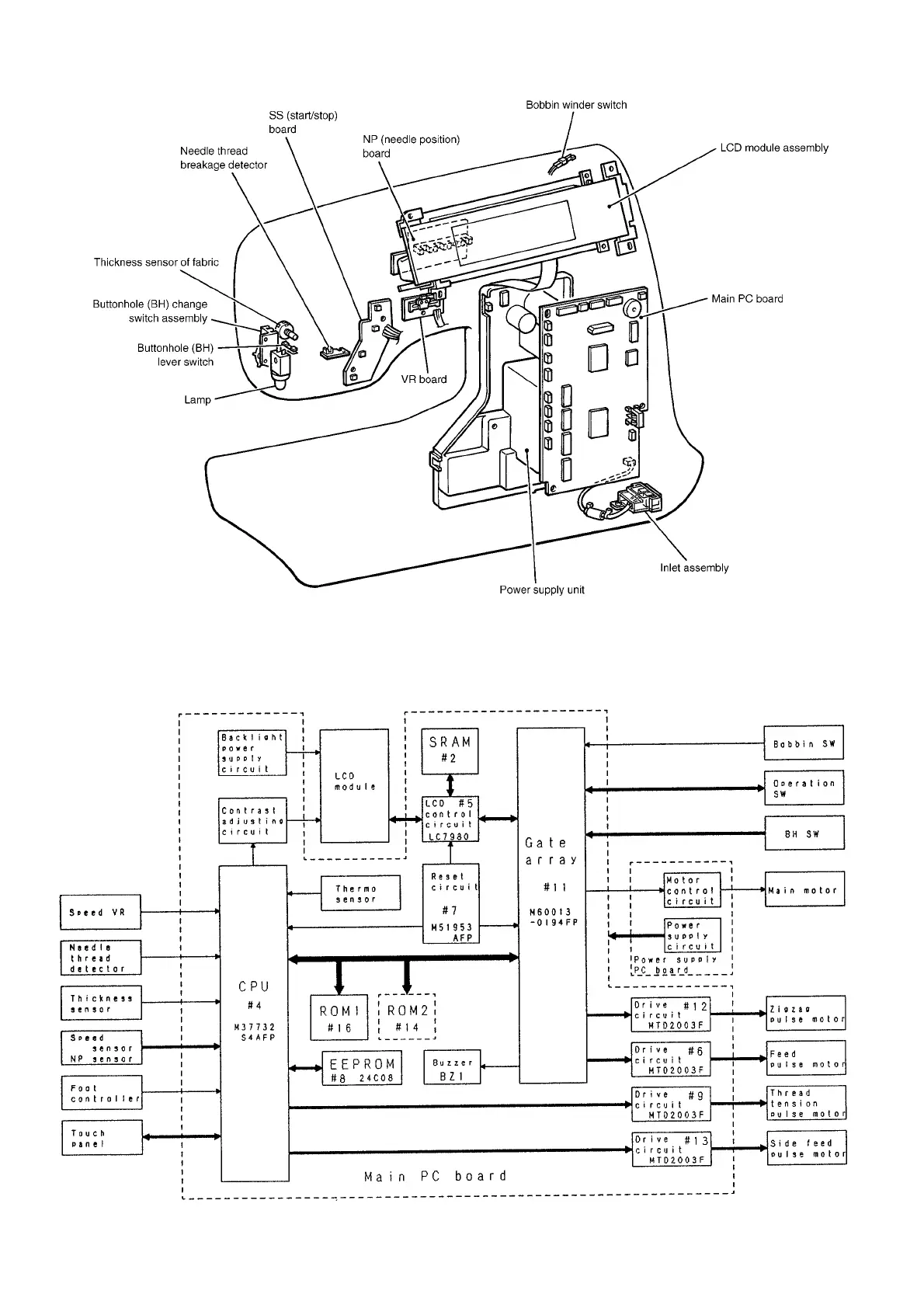 Brother PC6000 - Electronic Parts Arrangement Chart; Control System Block Diagram