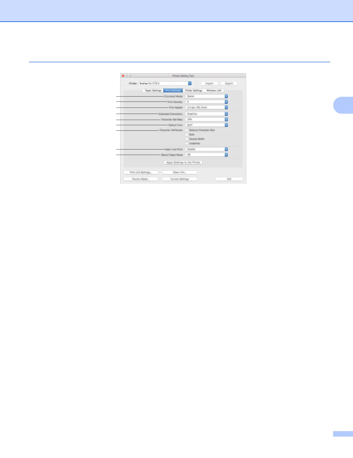 Available settings: [Raster], [ESC/P Legacy], [ESC/P Brother], [P-touch Template]