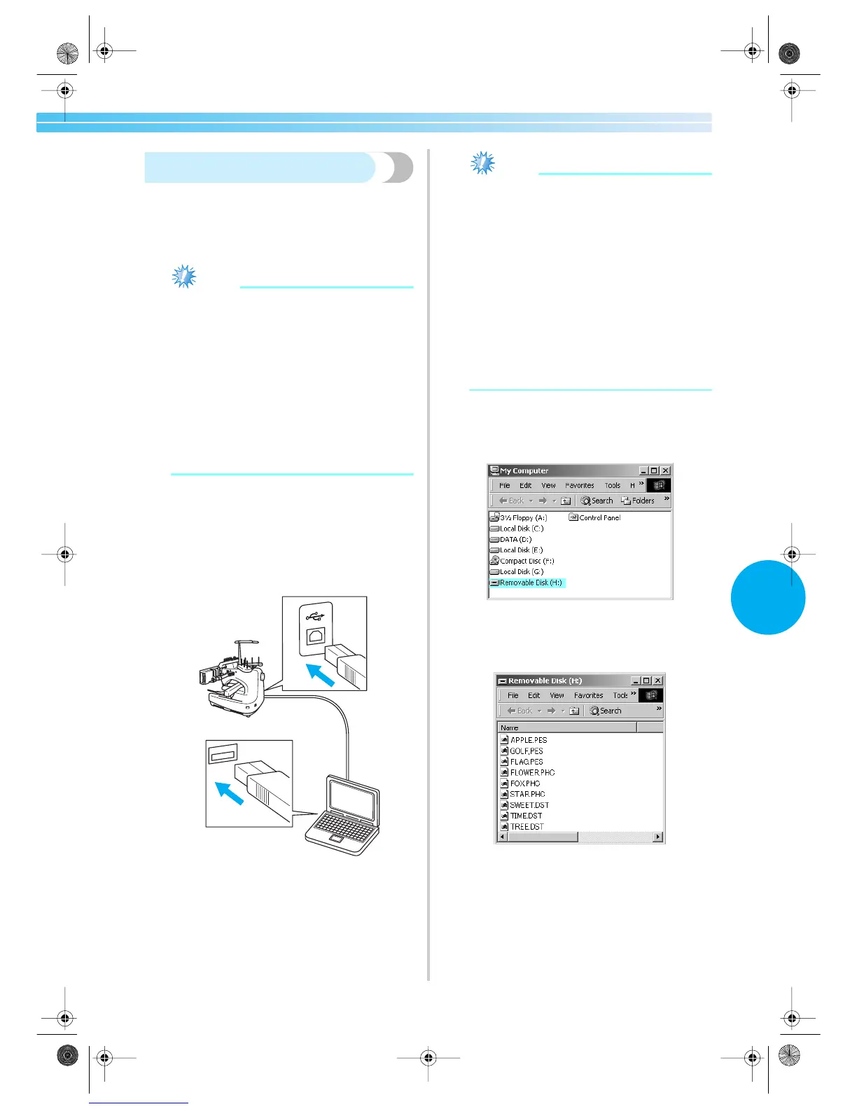 Using the included USB cable, the embroidery