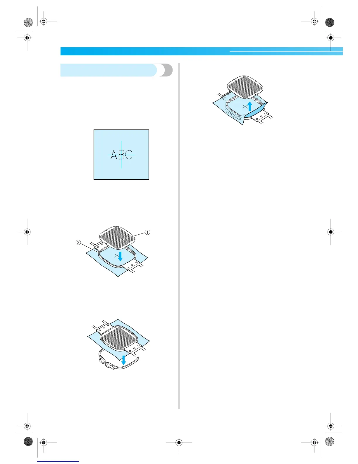 frame. Align the guidelines on the embroidery