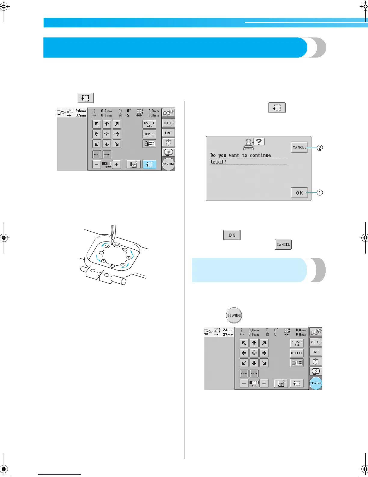 Check the embroidery area to make sure that the embroidery will be sewn in the desired location and will not