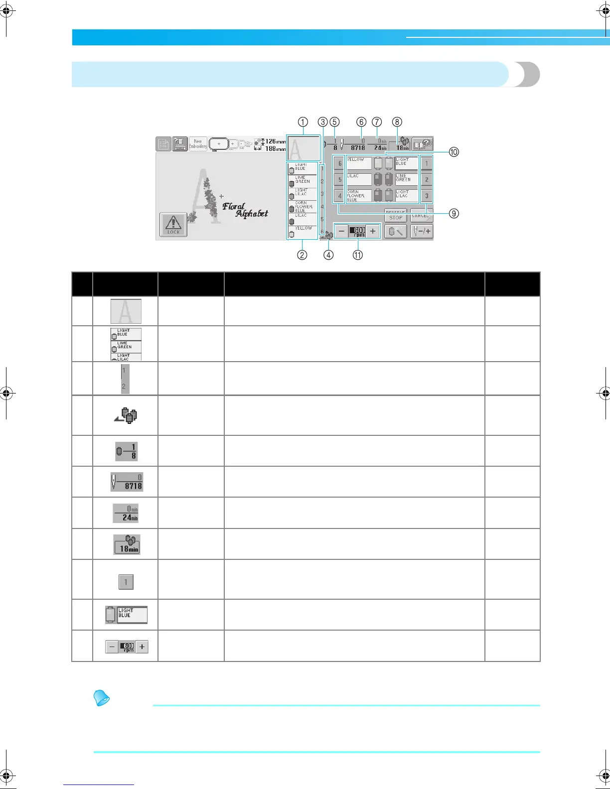 Shows the order for the thread color changes. During
