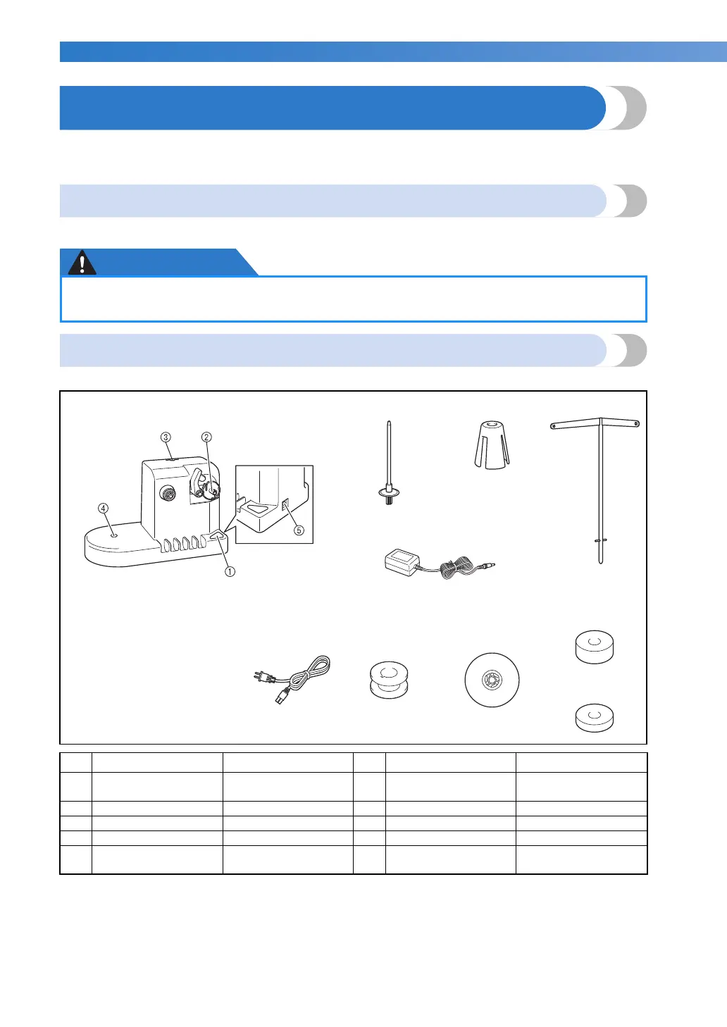 Check that the following bobbin winder and accessories are included.
