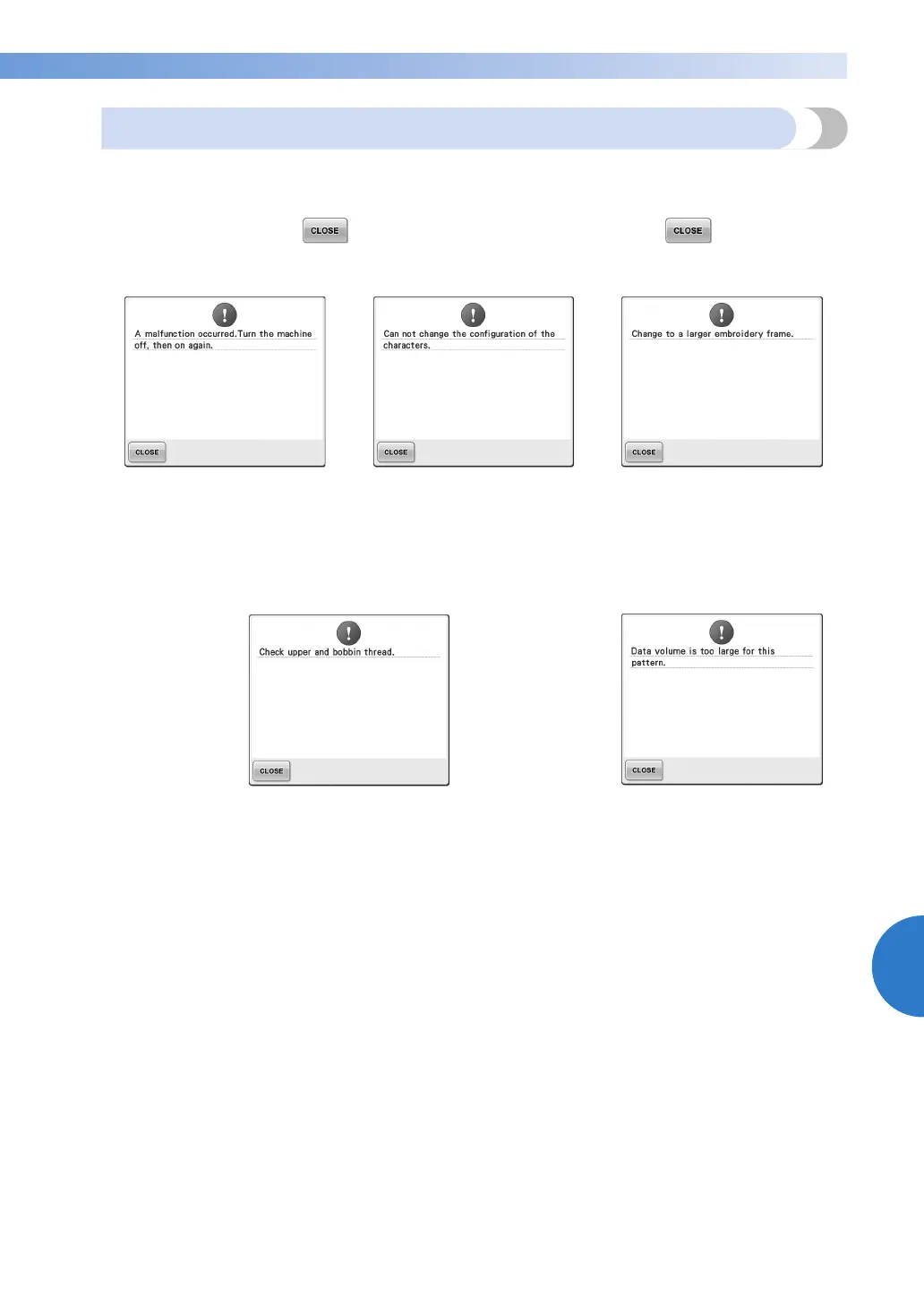 performed, the machine stops and informs you of the error with a buzzer and an error message. If an error
