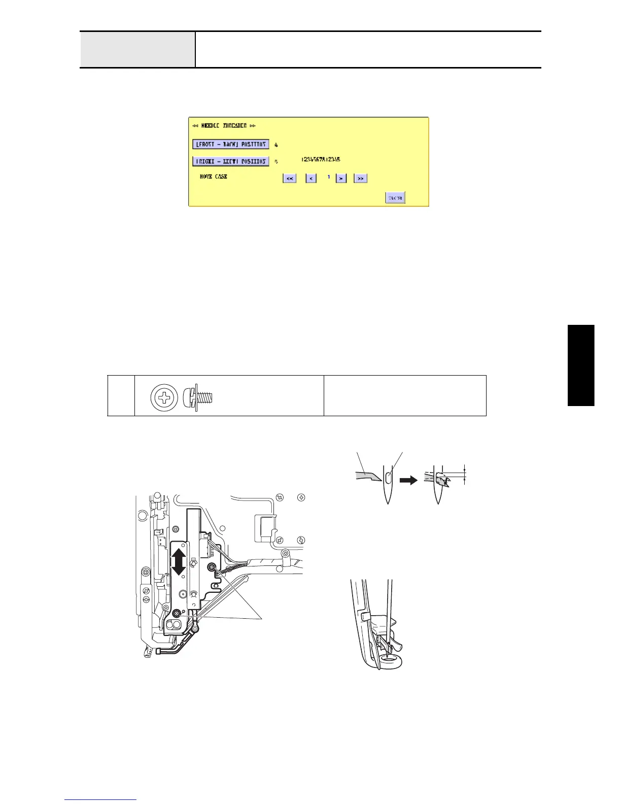 1. Enter the test mode, and press [MAIN BOARD TEST MODE] and then [NEEDLE THREADER].