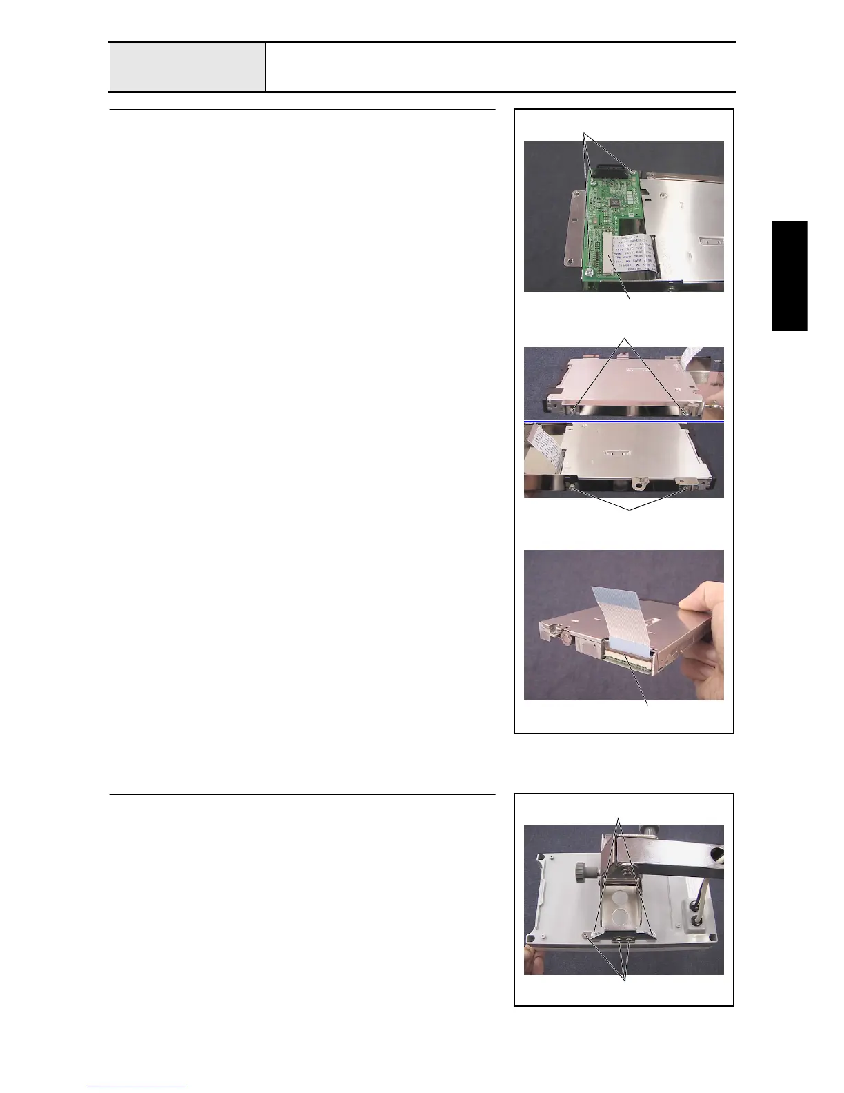 2. Remove the 3 screws 1, and then remove the FD PCB assembly.