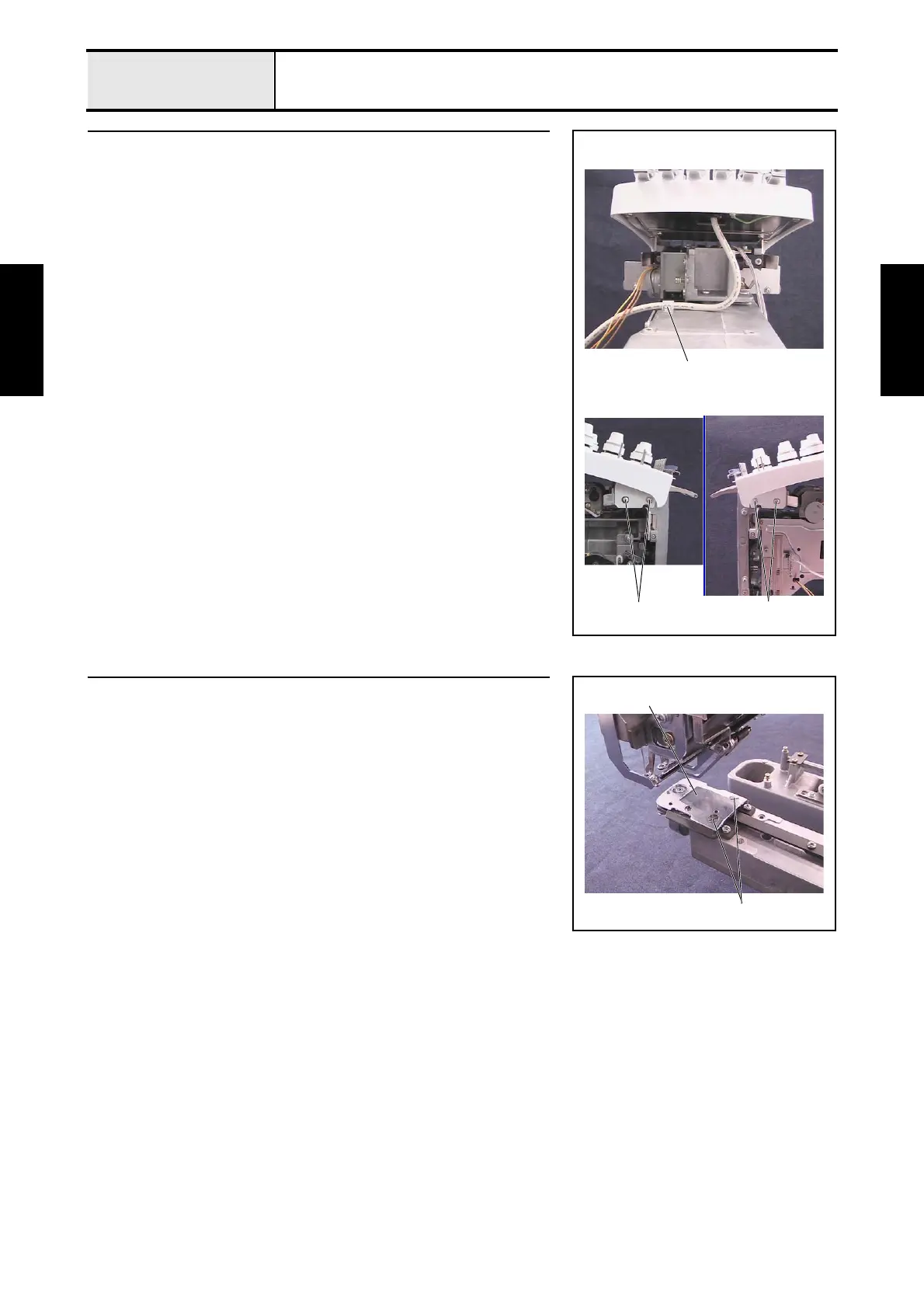 2. Remove the screw 1, and then remove the cord clamp from the arm bed.