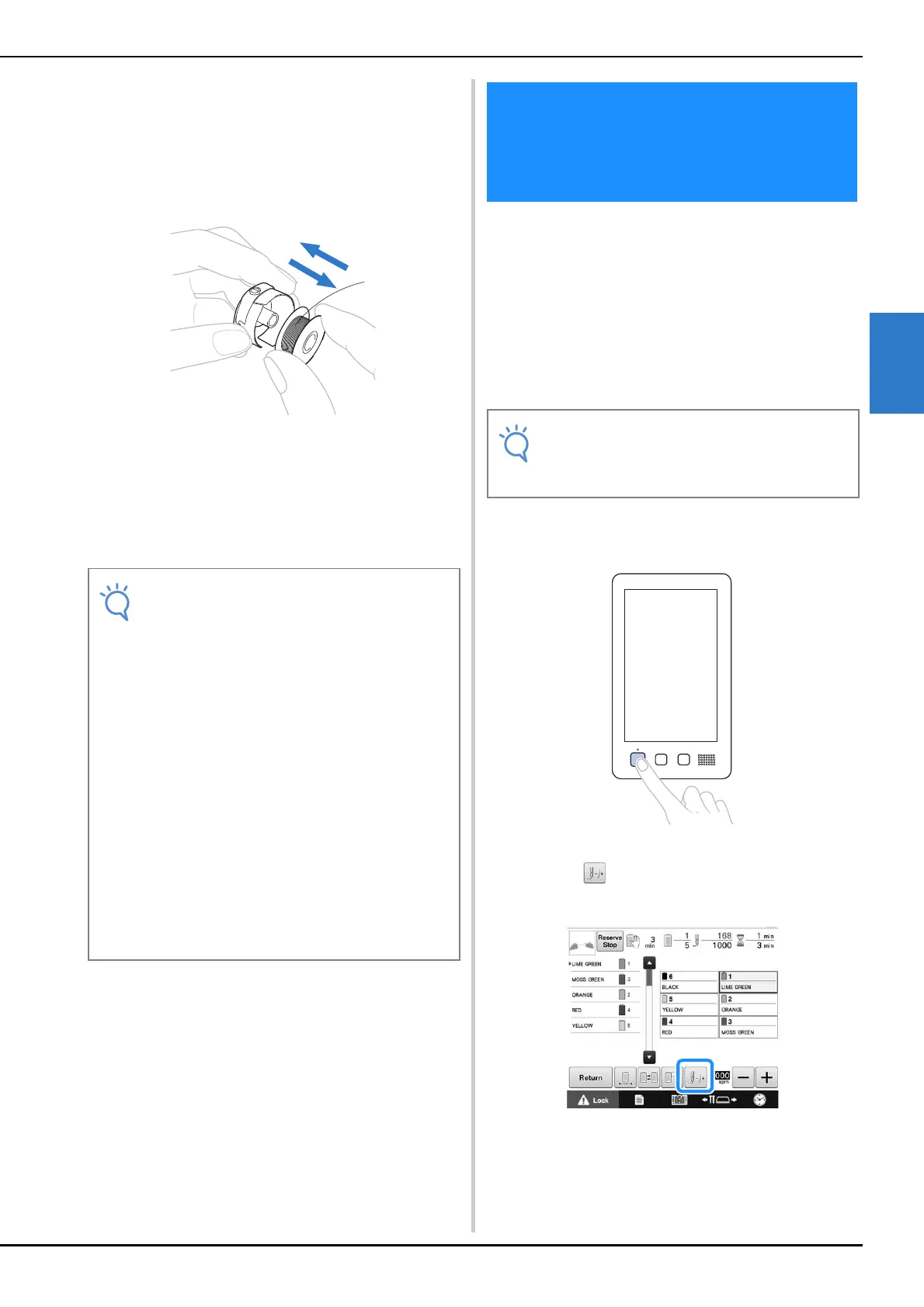 ■ If the bobbin thread ran out, replace