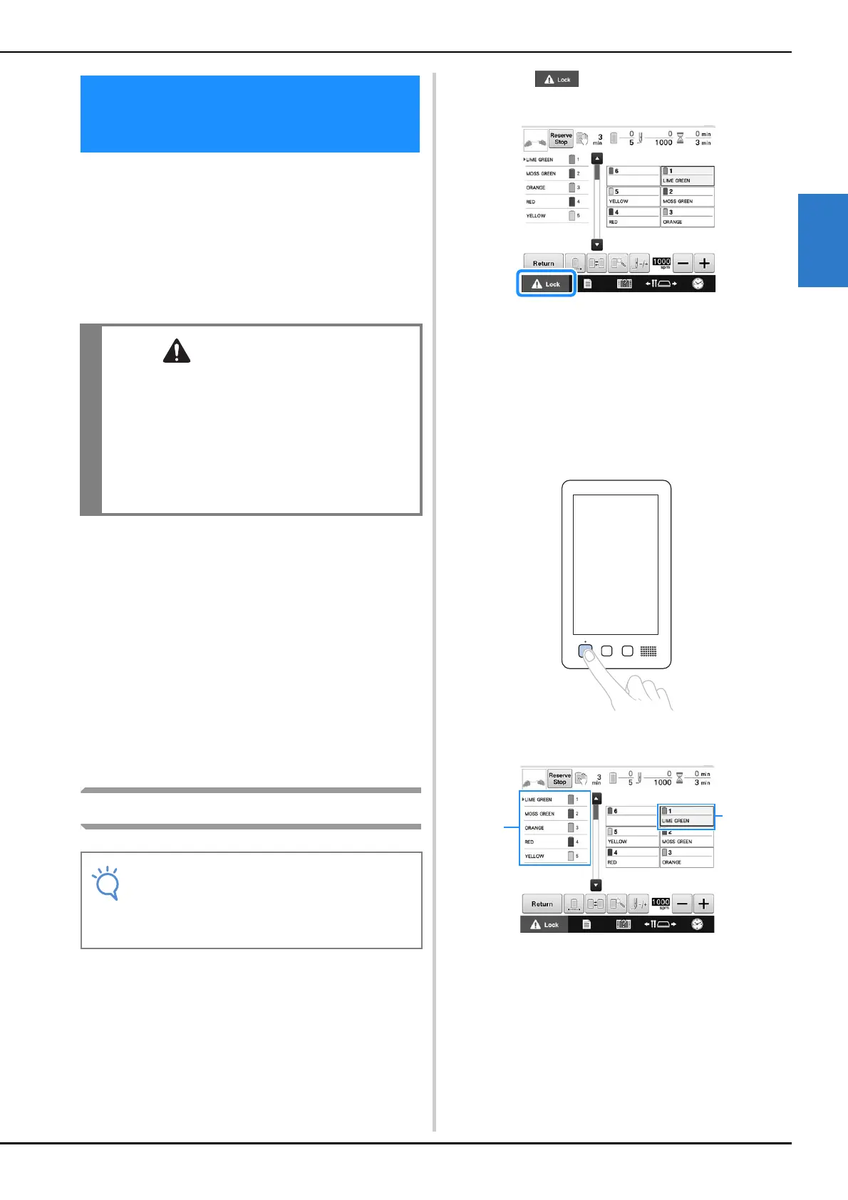 Normally, the embroidery machine is locked (it