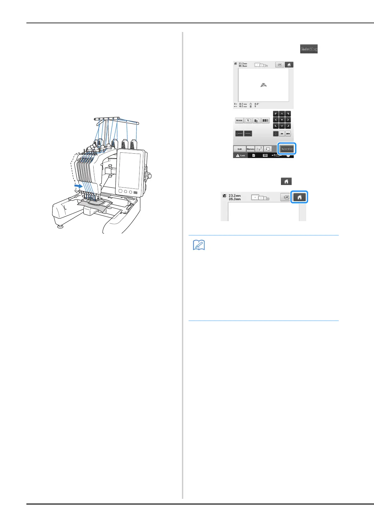 • While the embroidery machine is sewing, the point
