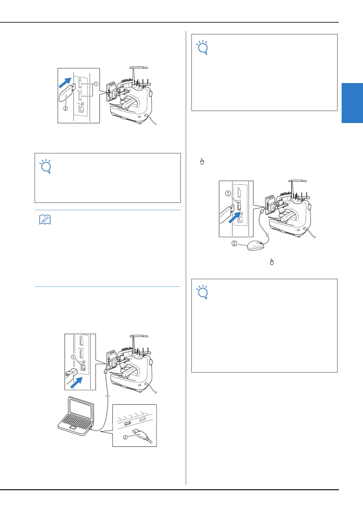 The USB mouse, connected to the sewing machine,