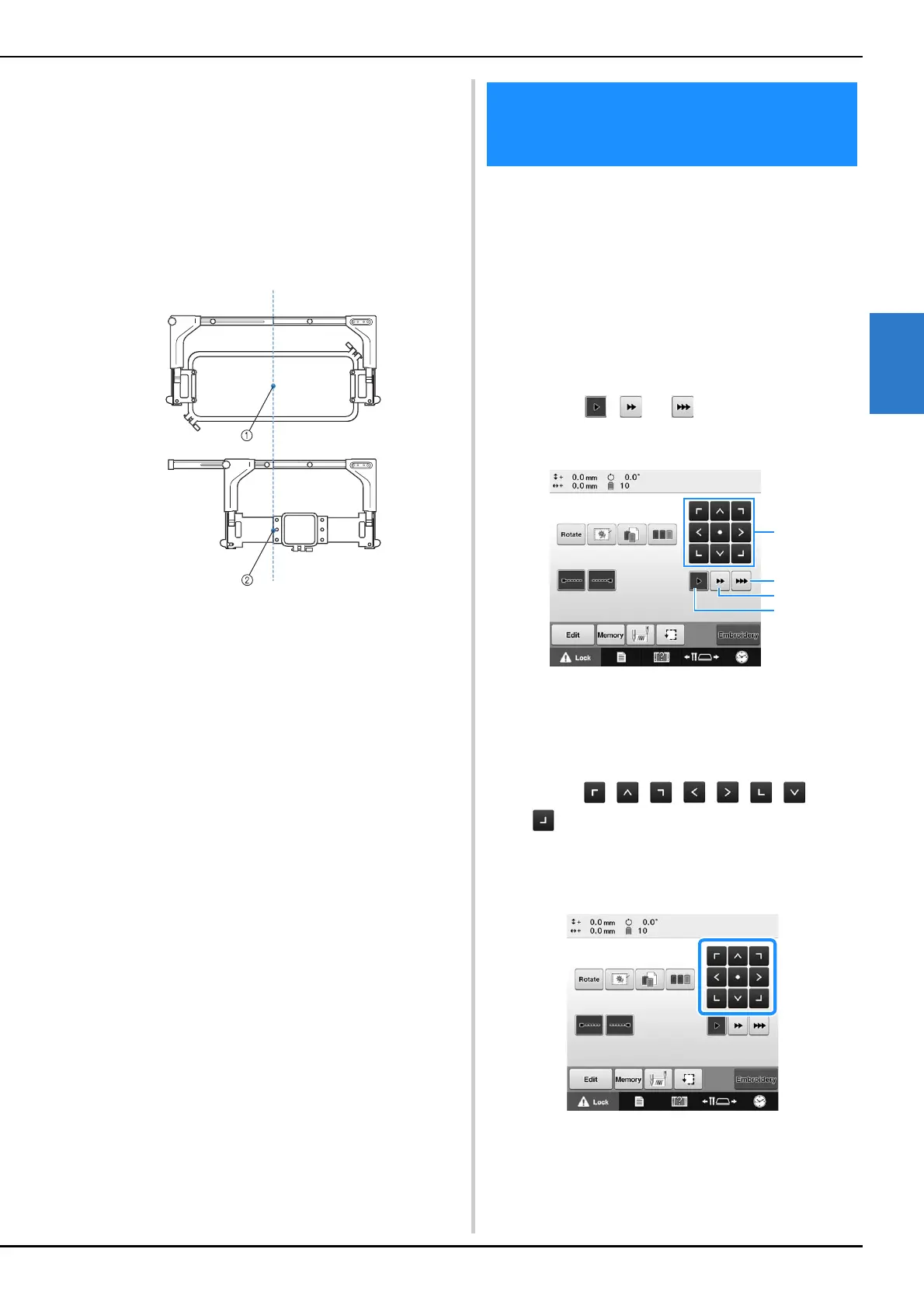 move the frame and adjust the embroidering