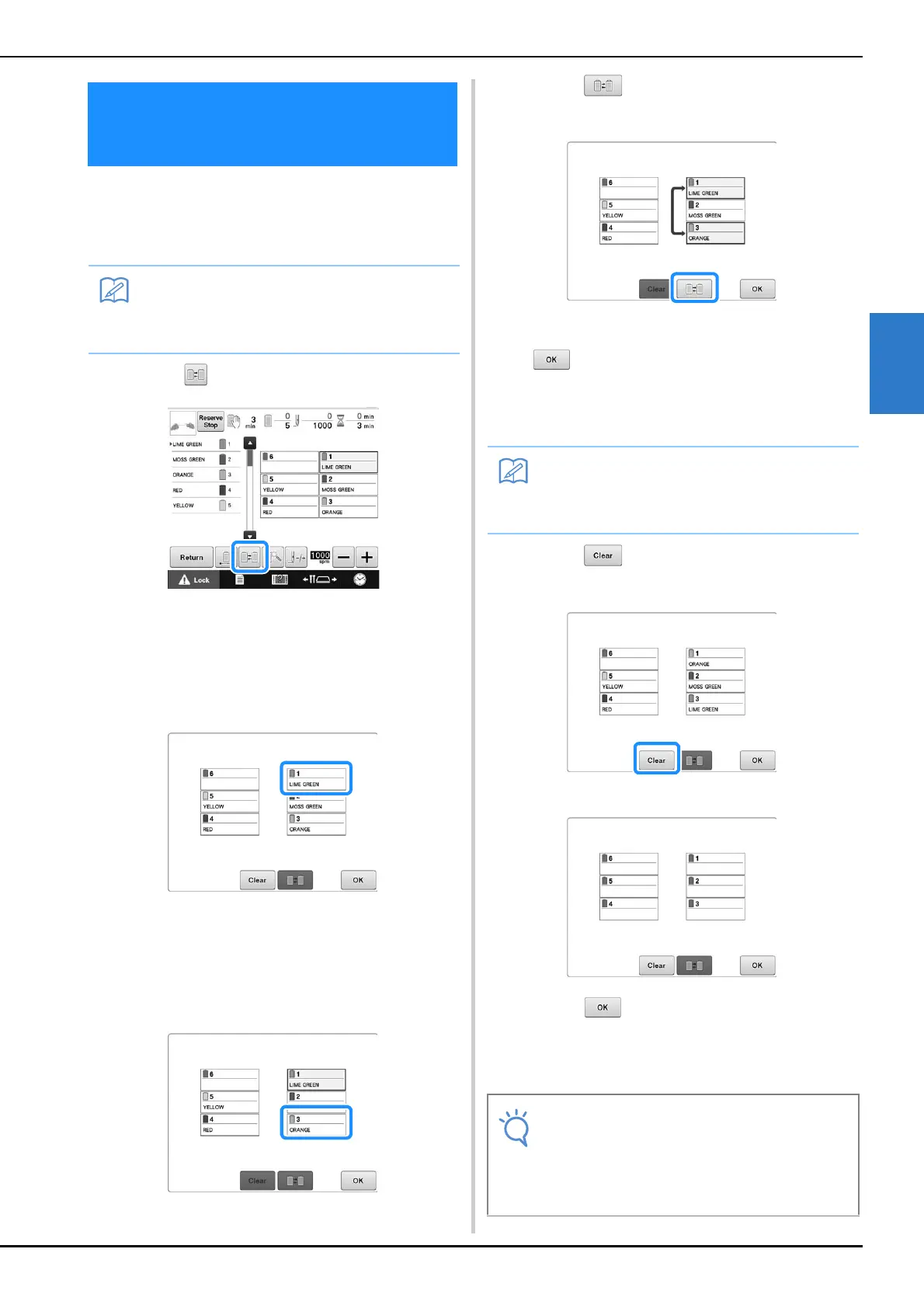 the needle position thread color on the screen, the