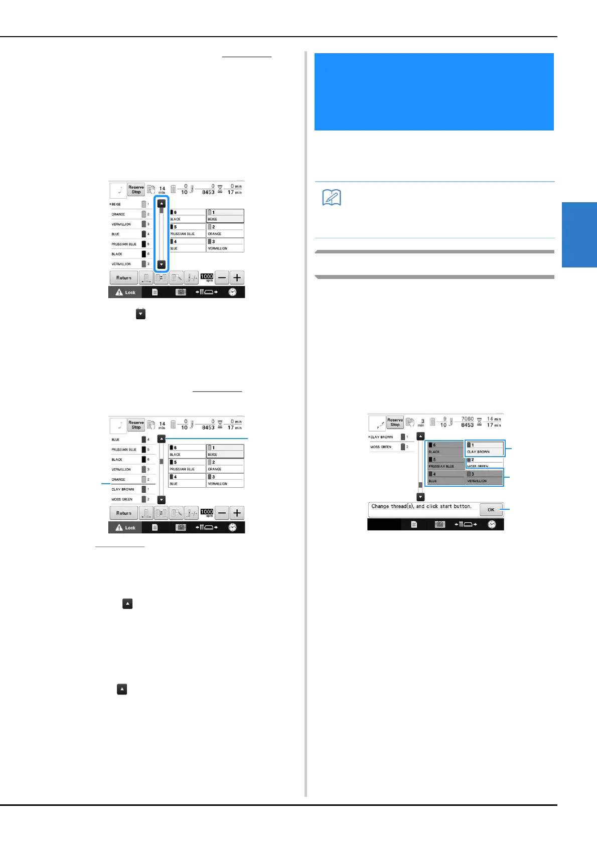 2 Touch to scroll up through the thread color