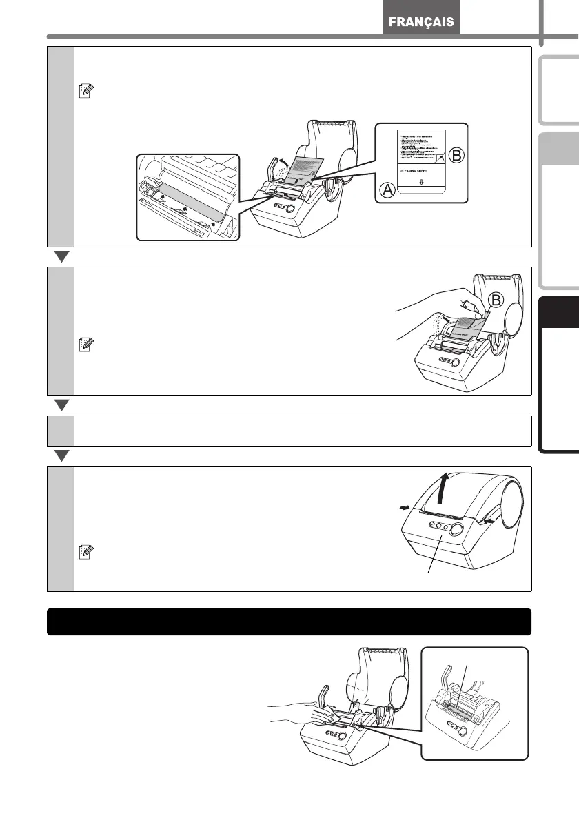 Fermer le couvercle du rouleau DK, et mettre l’imprimante sous tension.