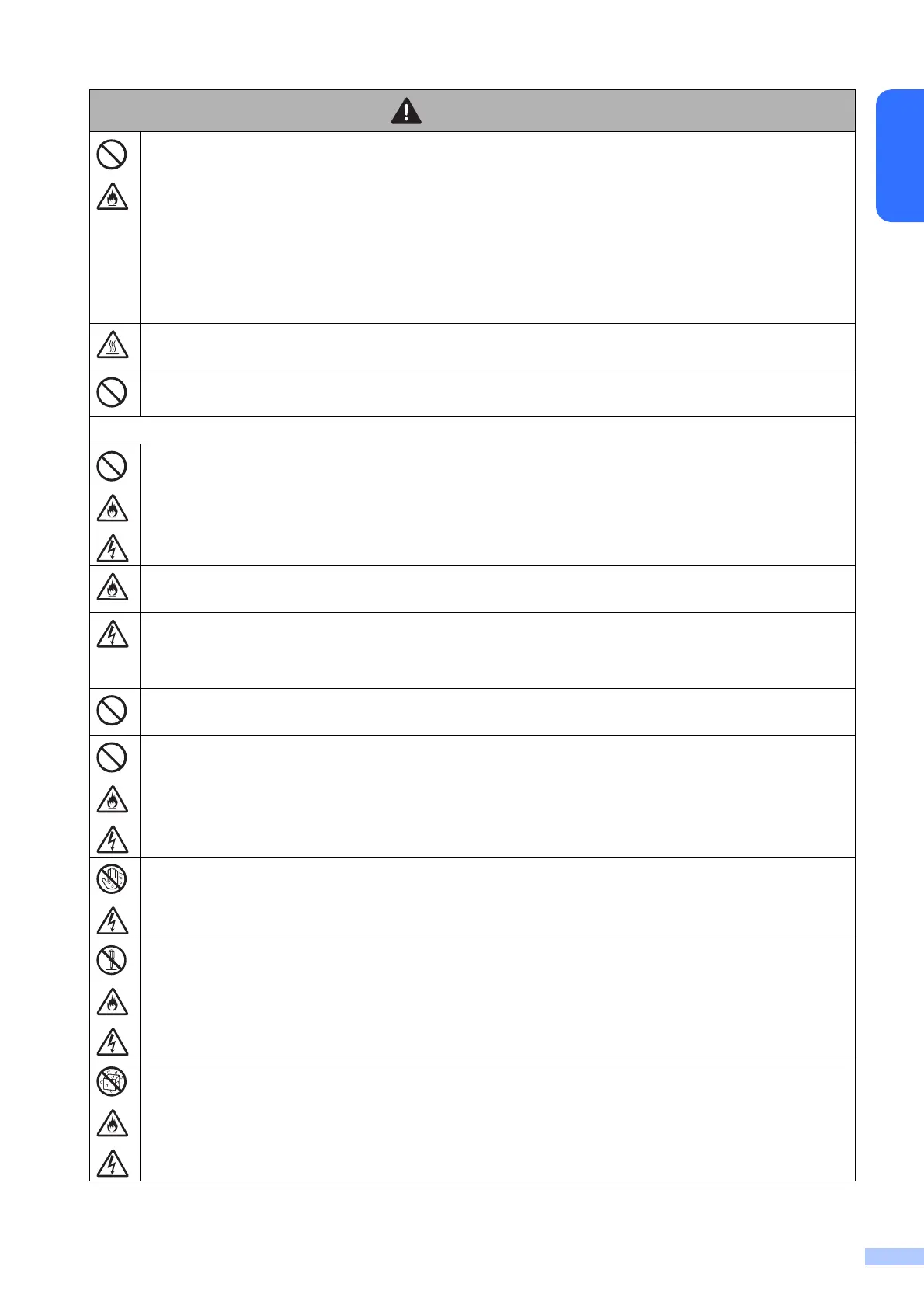 DO NOT touch the AC adapter and the printer during a thunderstorm.