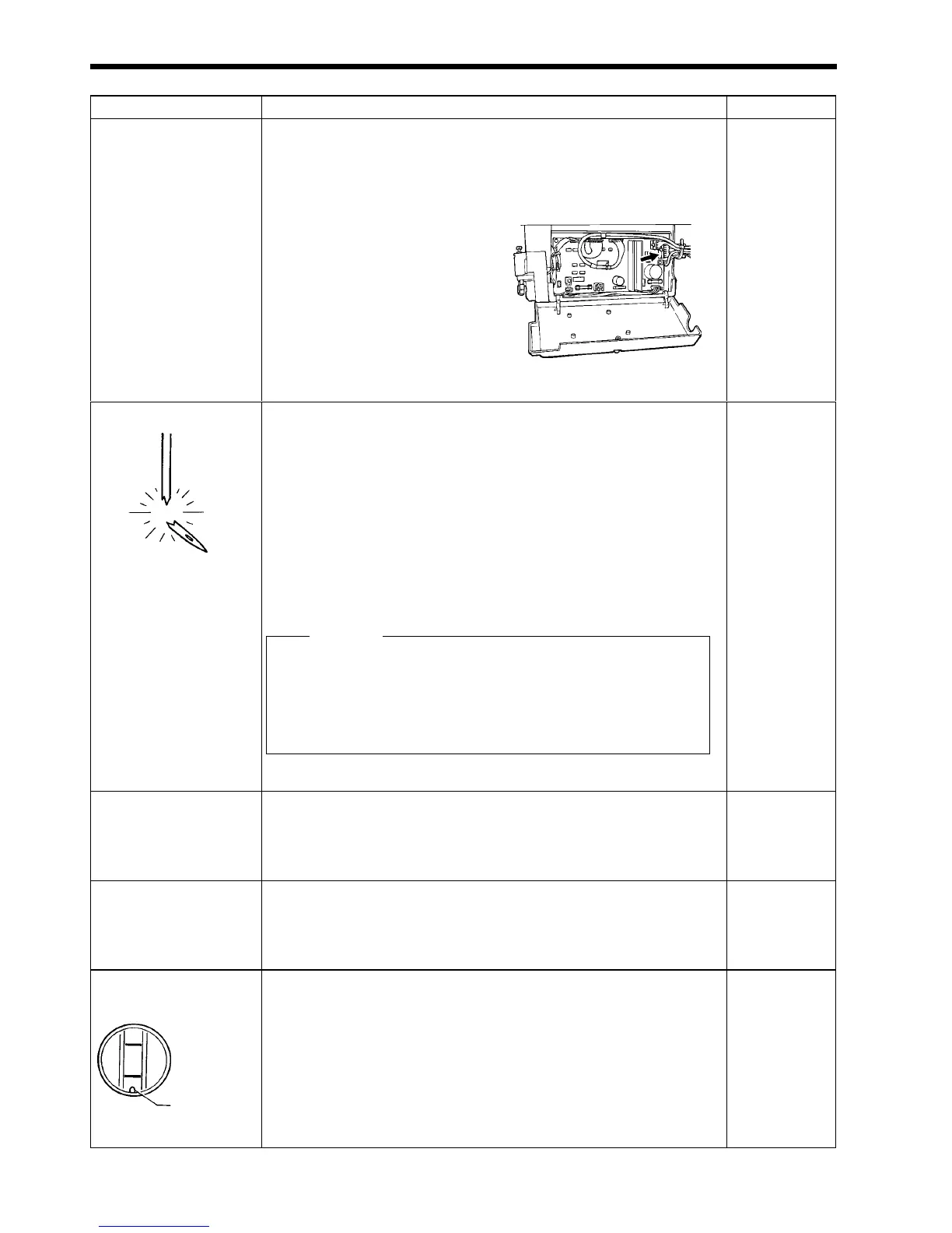 • Is the rotary hook lubrication adjusting screw too loose?