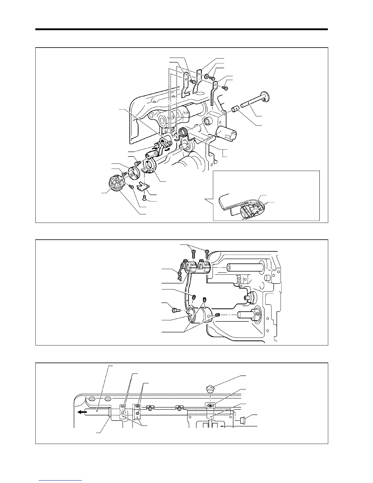 5-13. Bobbin case, rotary hook and thread trimming mechanism