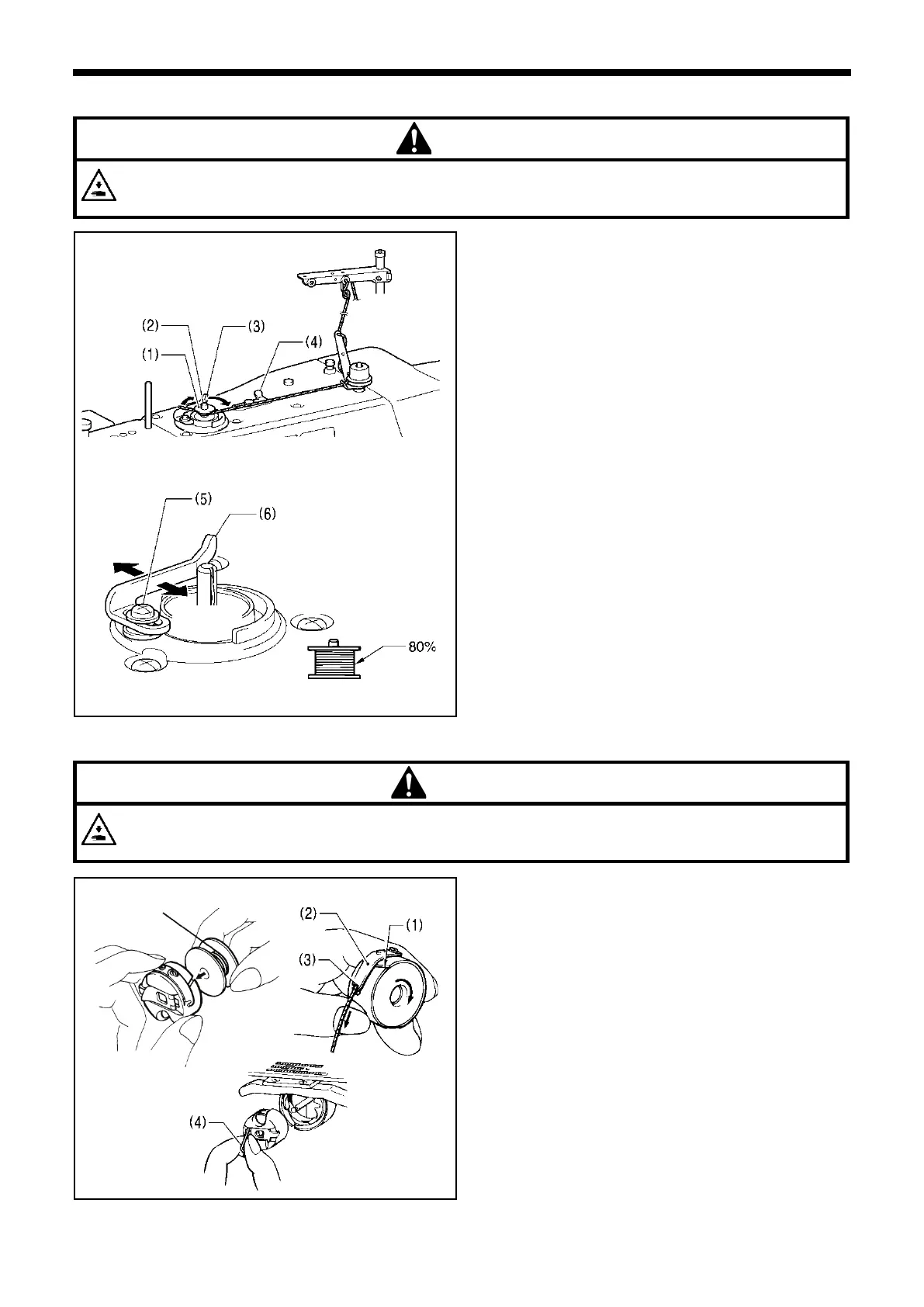 Do not touch any of the moving parts or press any objects against the machine while winding the lower thread, as
