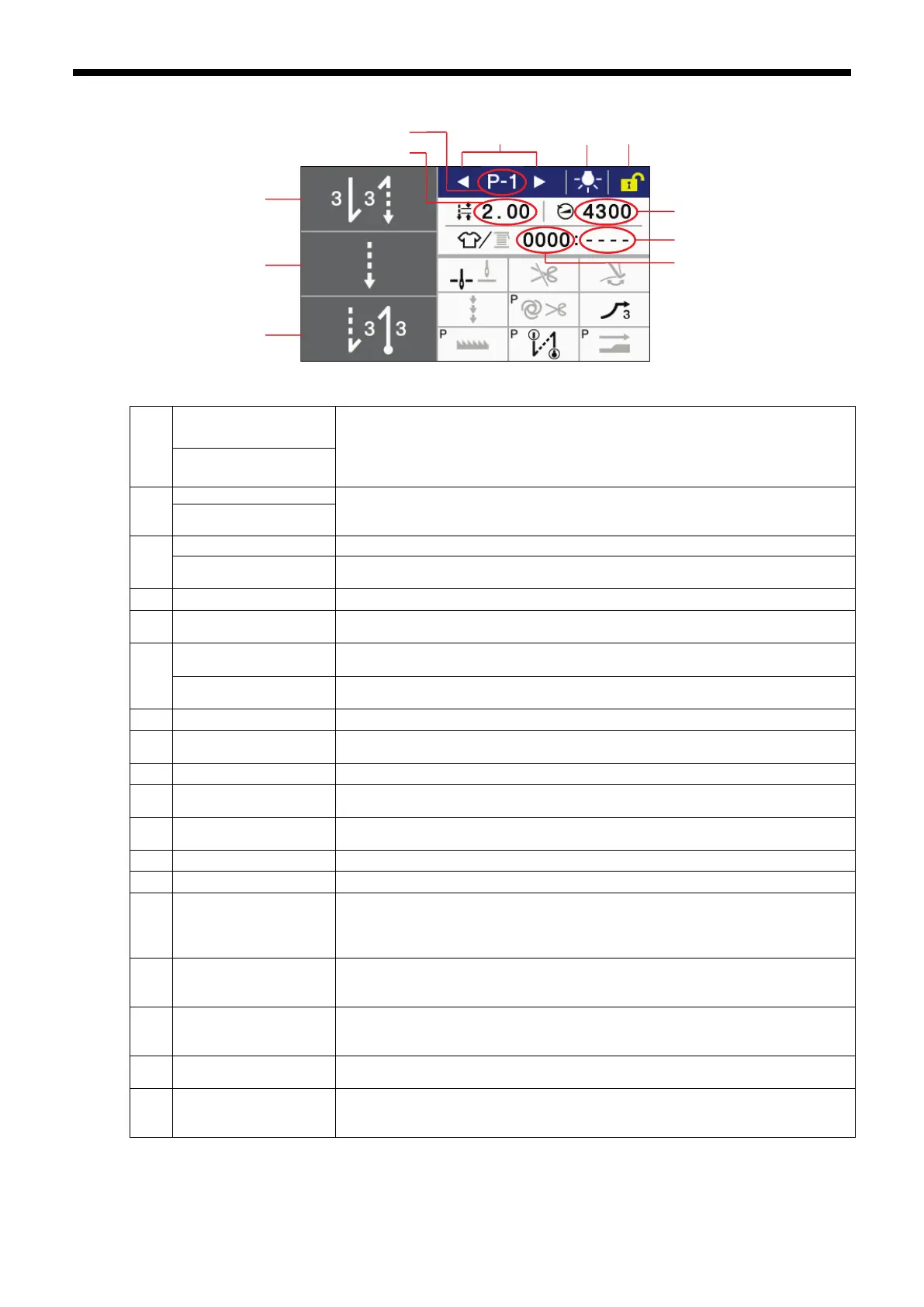 If you keep pressing this key, the display switches to the main sewing setting