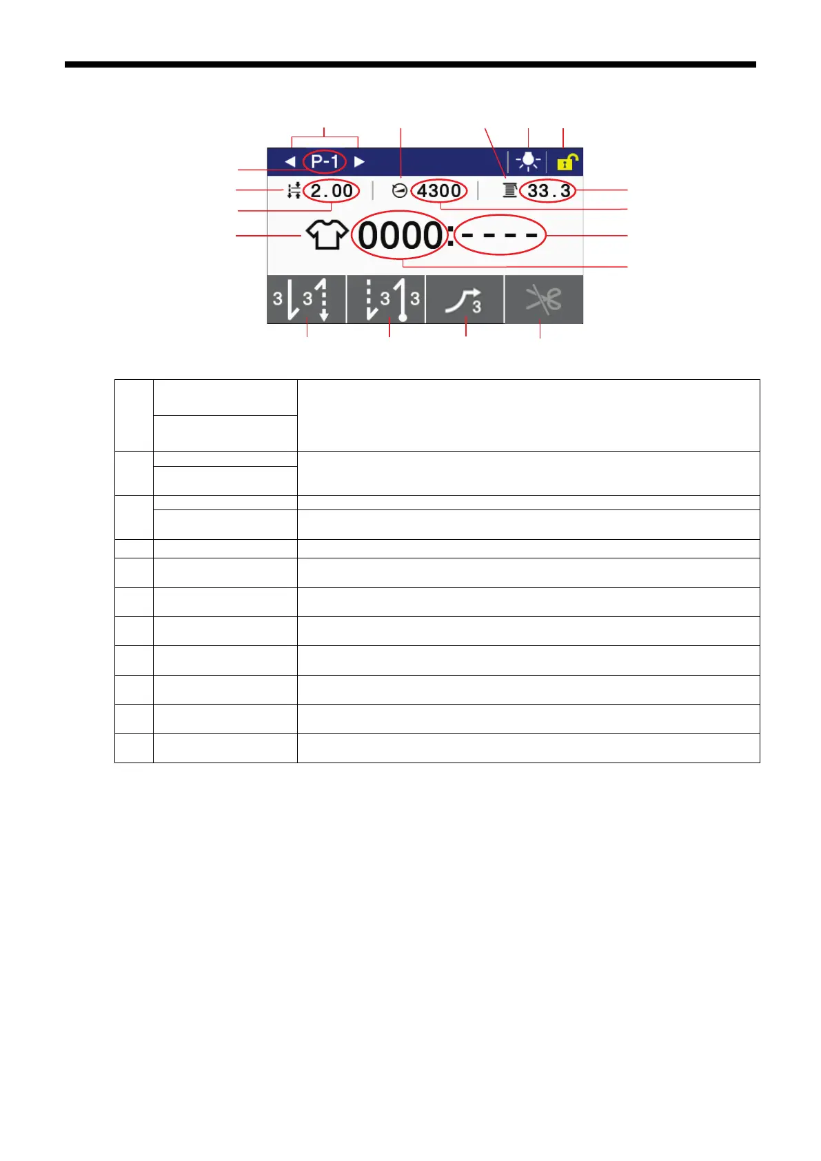 If you keep pressing this key, the display switches to the main sewing speed