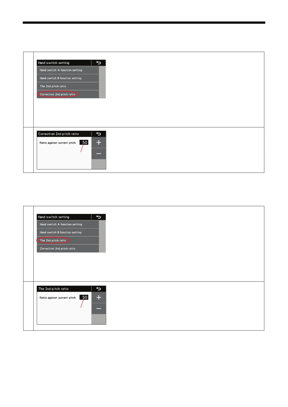 At the hand switch setting screen, select "Correction 2nd pitch ratio".