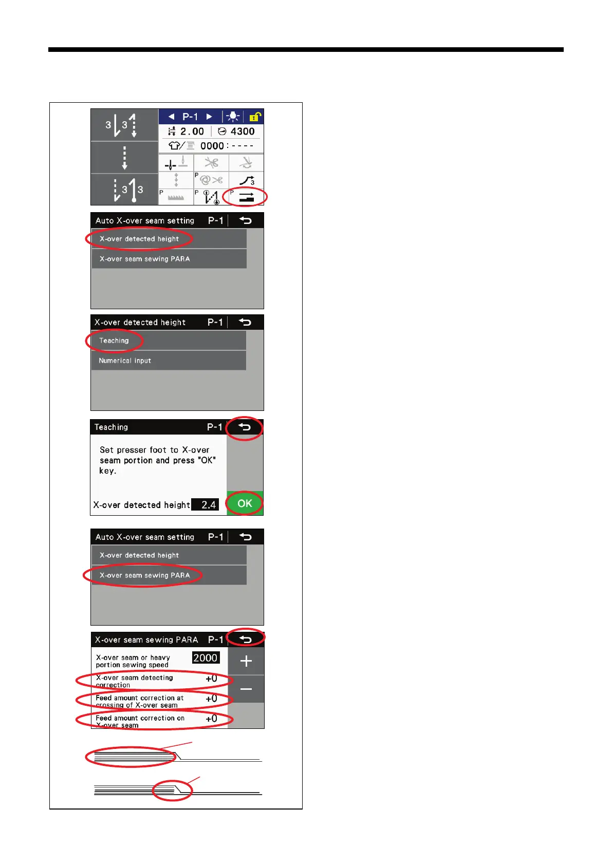 X-over seam detection timing, select “X-over seam sewing