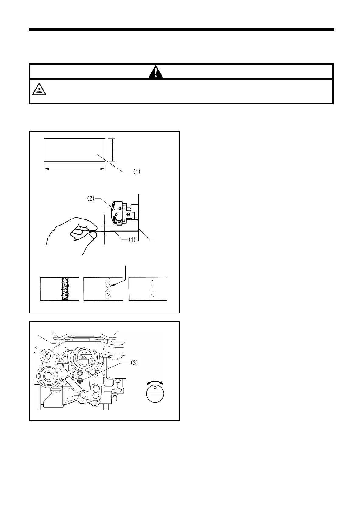 the feed mechanism when checking the amount of oil supplied to the rotary hook. If care is not taken, injury