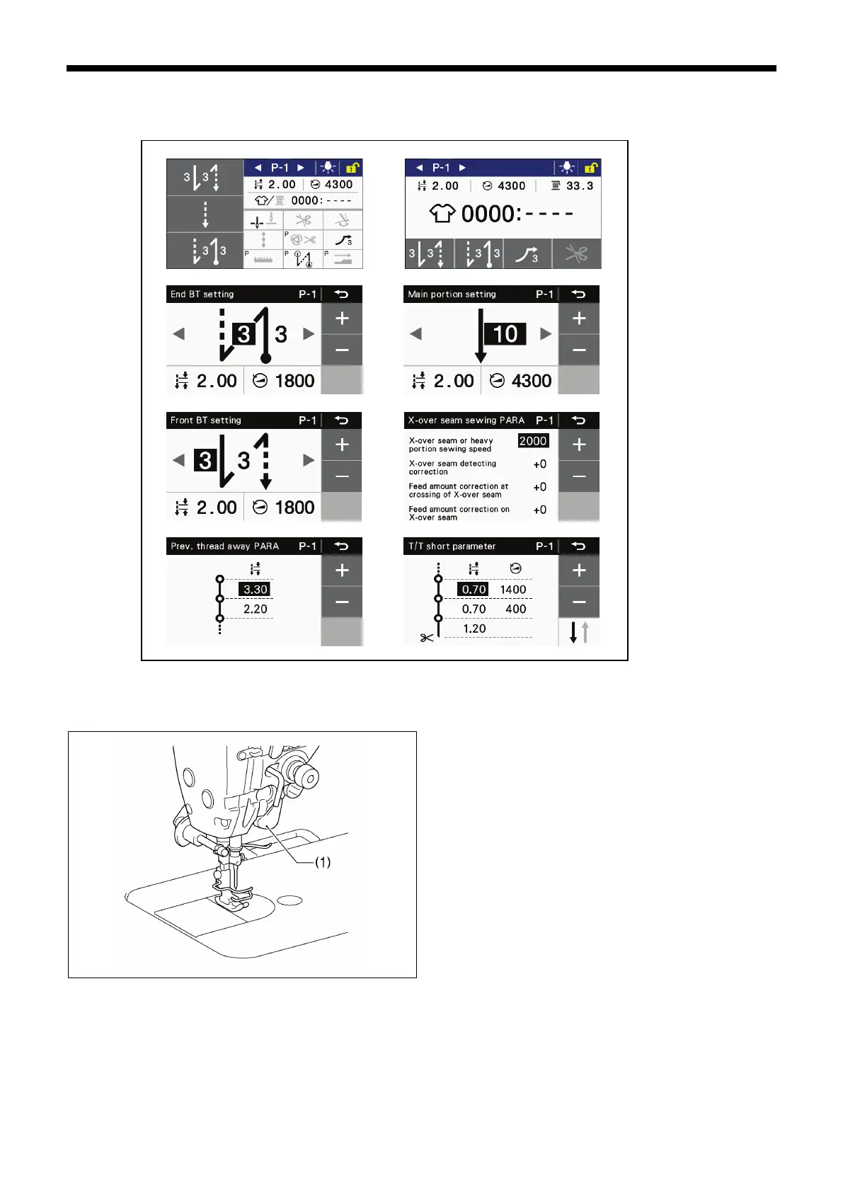 If the treadle is depressed while any of the following screens are displayed, the sewing machine will operate.